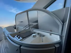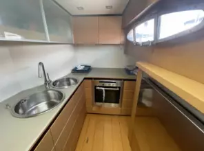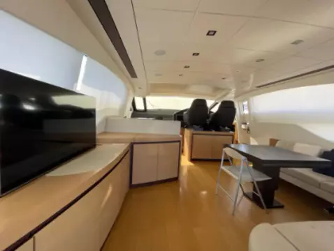 The Pershing 72 is able, like a seaside cottage, to provide a calm and relaxed atmosphere immersed in comfort, but can take you anywhere in no time (thanks to her 44 knots of top speed and 38 of cruising speed). Credit is due to a layout that aims for comfort, interiors that are elegant and refined but free of any concessions to excess, and a successful marriage between Pershing and Poltrona Frau, which signed the pilot house, the seating and a thousand small details of the interior furnishings. A retractable window allows the cockpit and living area to be joined into a single space that invites relaxation, but is also a privileged vantage point for the unmistakable stern spray that a Pershing produces when launched at full speed. The location of the galley, to the right of the pilot house but at an intermediate level between deck and lower deck reinforces the convivial vocation of this 72-footer.