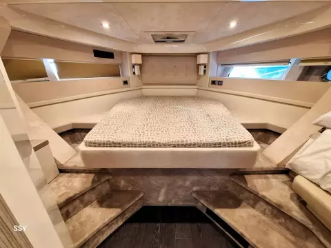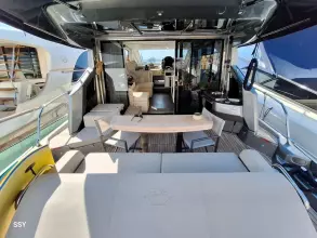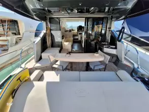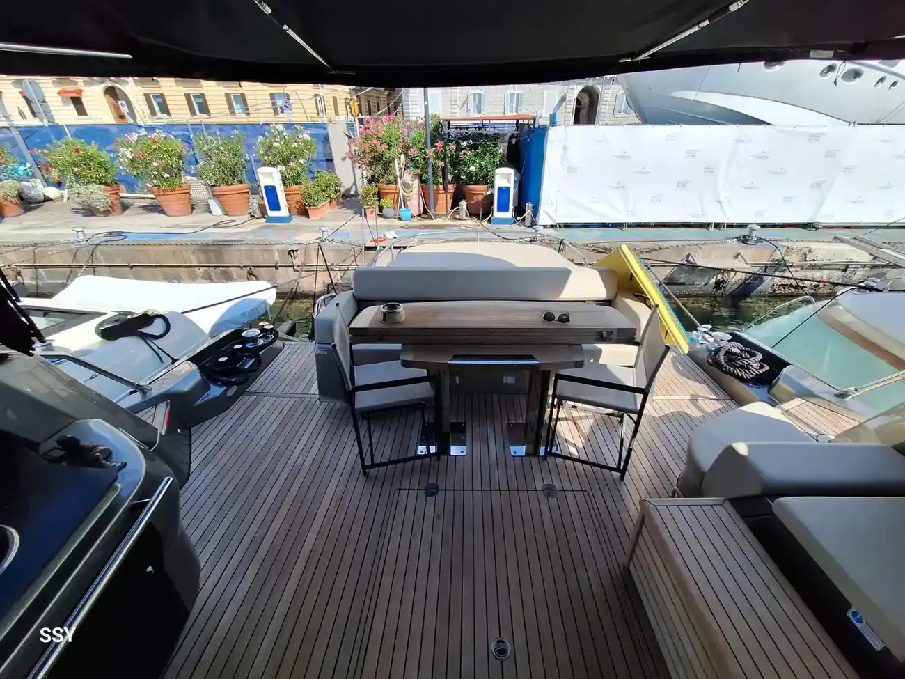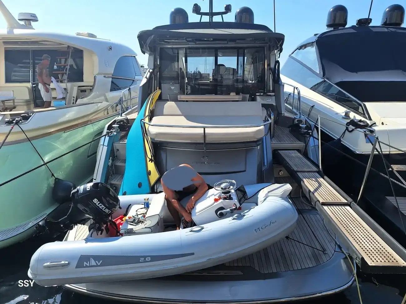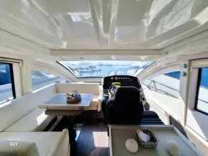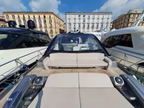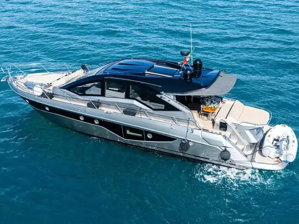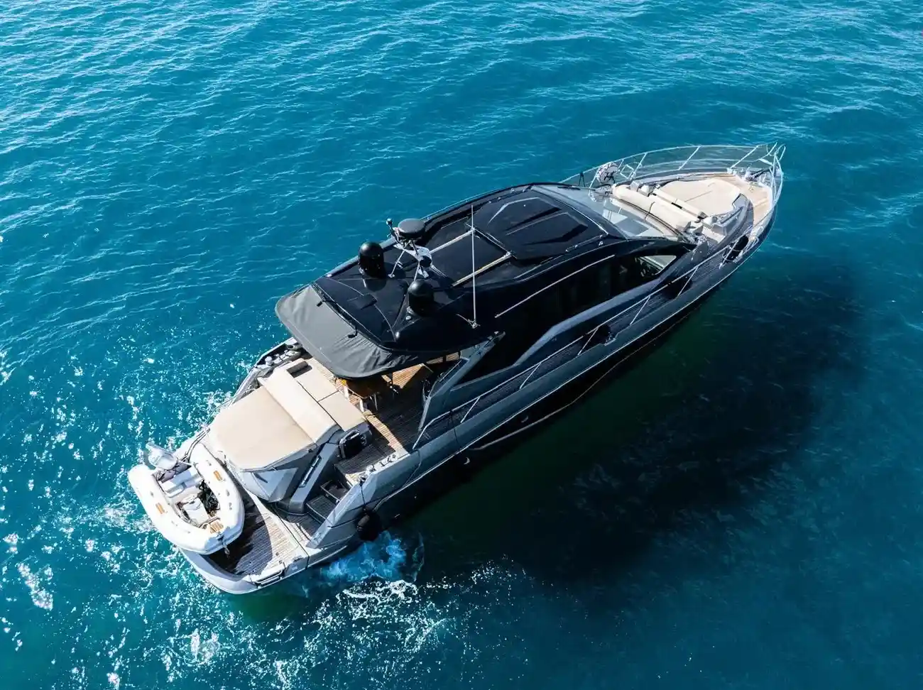 The Cranchi 60 HT stands out for its sleek, sporty profile, enhanced by a modern-design hard-top (in black), stabilized with Seakeeper gyroscope. The metallic grey hull, teak deck, and interiors finished in alcantara and parquet throughout all areas reflect refined, contemporary Italian style.