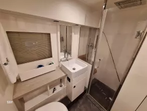 located aft with independent access from the cockpit, equipped with bed andprivate bathroom.