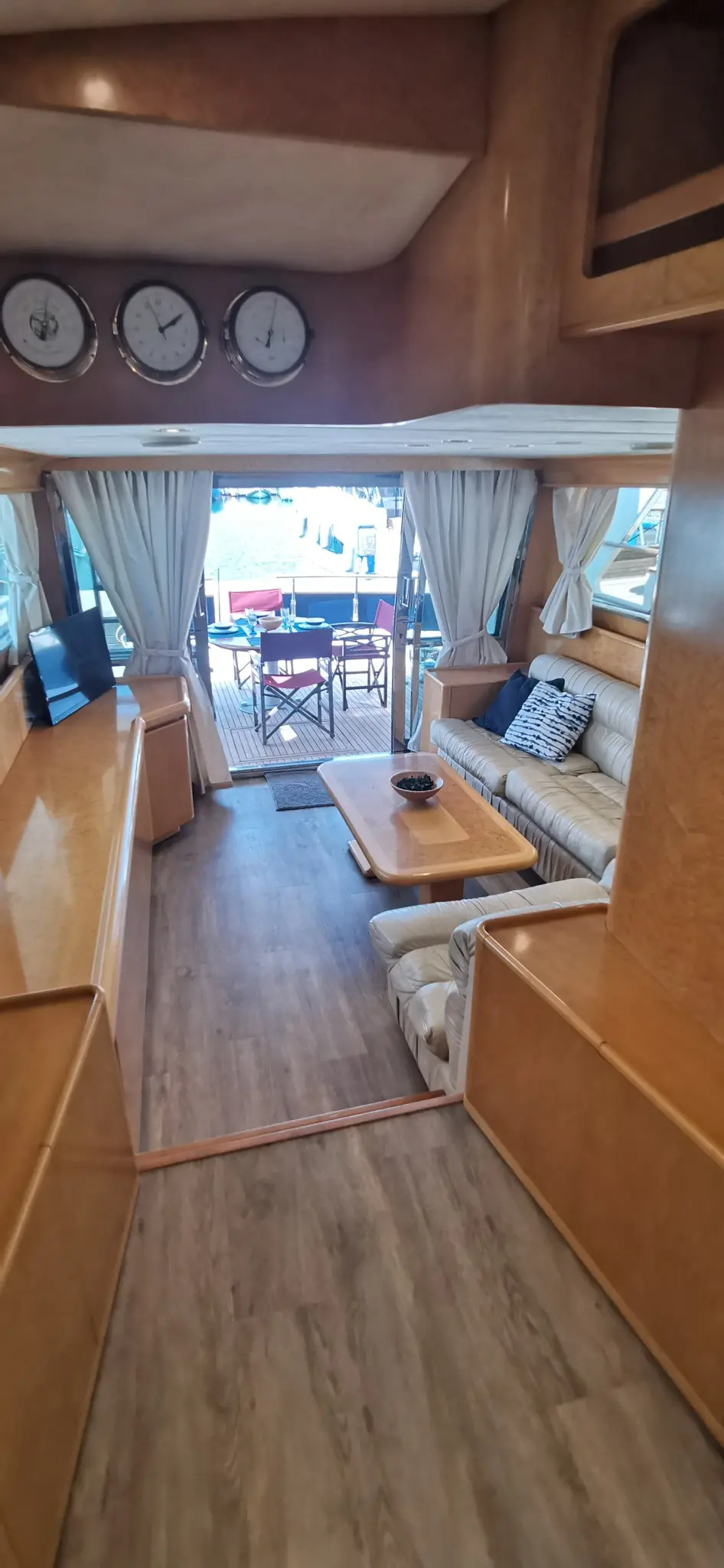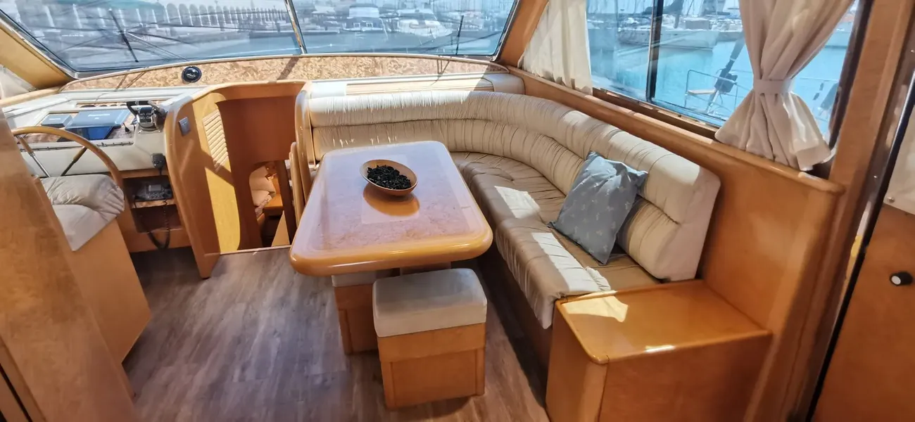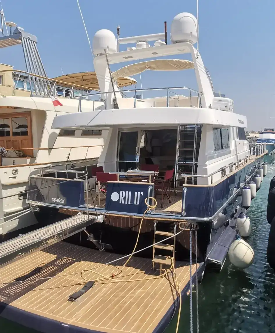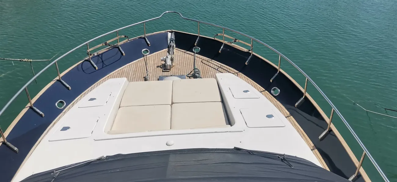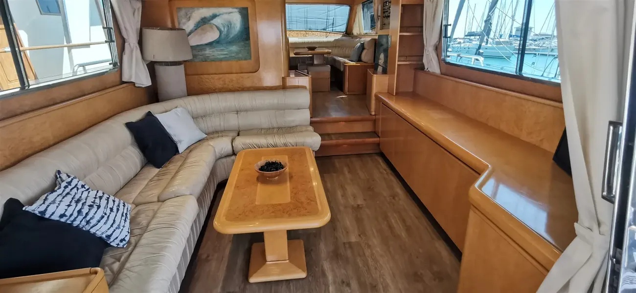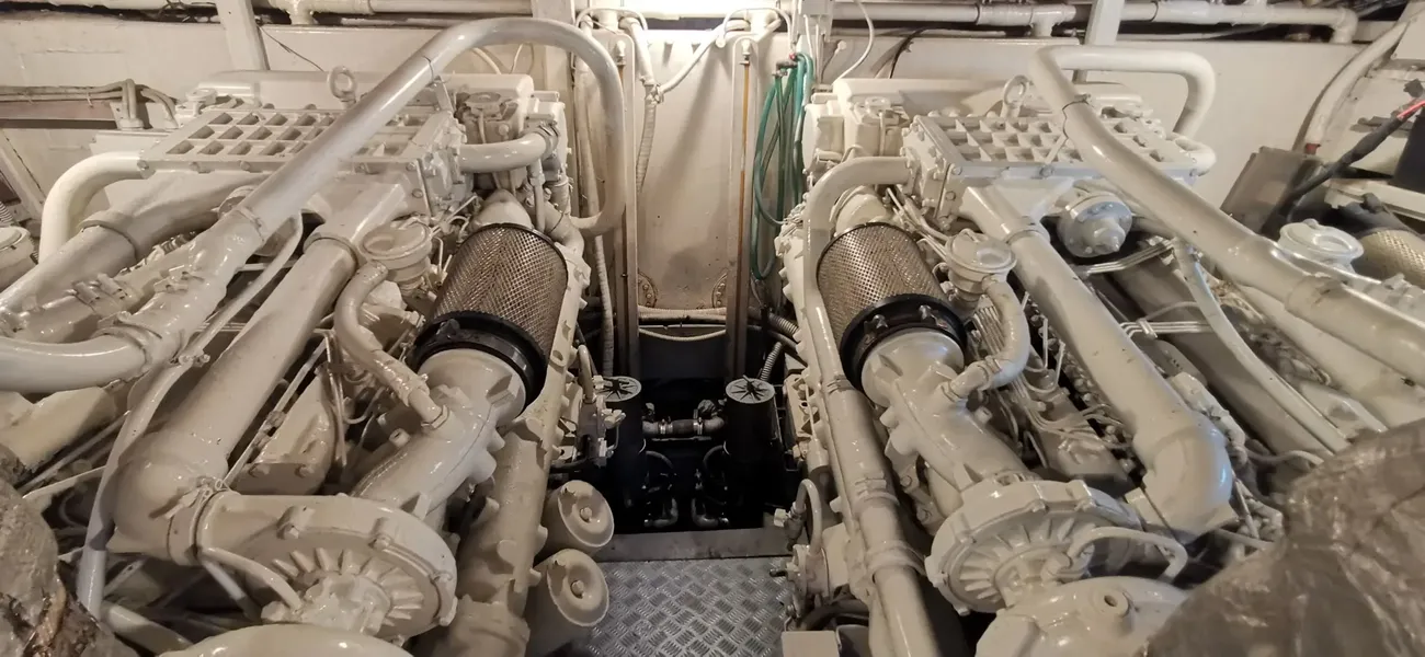 1988 boat, total Refit 2022/2023, new gunwale, engines replaced new in 2017, engines landed in 2025, the right brought to 0 hours and the left complete service, engine room camera, appliances as new, stereo in all cabins, external 24v direct current sockets. Double master cabin with ensuite bathroom and walk-in closet, twin guest cabin with single beds and en-suite bathroom, double guest cabin with en-suite bathroom, sailor cabin with bow facilities, double saloon with double sofa and table, separate kitchen with ceramic hob, oven, sink, fridge and dishwasher, large cockpit with table, folding table on the fly with L-shaped sofa, bridge on the fly with instrumentation, comfortable sundeck in the bow, oversized aft platform. Document not valid for contractual purposes. information as provided to us is correct but not guaranteed. Mediation fees 5% + VAT on the purchase price and not less than € 2000 + VAT. Navigation equipment: Electronic engine control, GPS (Raymarine E80), Intercom, Autopilot (Raymarine ST6002), VHF Radio (Raymarine RAY218E), SSB. Staging and technical: Fume/Gas Detector, Bilge Alarm, Water pressure pump, 20 Batteries, Teak Side Decks, Deck Shower, Twin Steering, Directional Spotlight, Hydraulic Flaps, Fire Extinguishing System, Flaps Indicators, Courtesy Lights, Underwater lights, Gangway (Elettrica), Platform, Entry door, Side door, Teak Cockpit, Shorepower connector, Voltage Rectifier, Electric Windlass (Lofrans 1500w 24v), swimming ladder, Saddles for tender, Waste Water Purifier System, cockpit table. Domestic Facilities onboard: Air Conditioning (Da ripristinare), Warm Water System, Watermaker, Waste Water Plant, Interior wooden floor (e moquette nelle cabine), 12V Outlets, Black Water Tank, 3 Electric Toilet. Security equipment: Radar reflector. Entertainment: Speakers (Interni ed esterni), DTV, Radio AM/FM, Hi-Fi, TV (In dinette). Kitchen and appliances: Galley, 2 Refrigerator (Di cui 1 in salone), Dishwasher, Microwave Oven (Whirpool), Ceramic hot plate (4 fuochi Siemens). Upholstery: Cushions, Bow Cushions, Fly Bridge Cuscions, Sunshade (Fly).