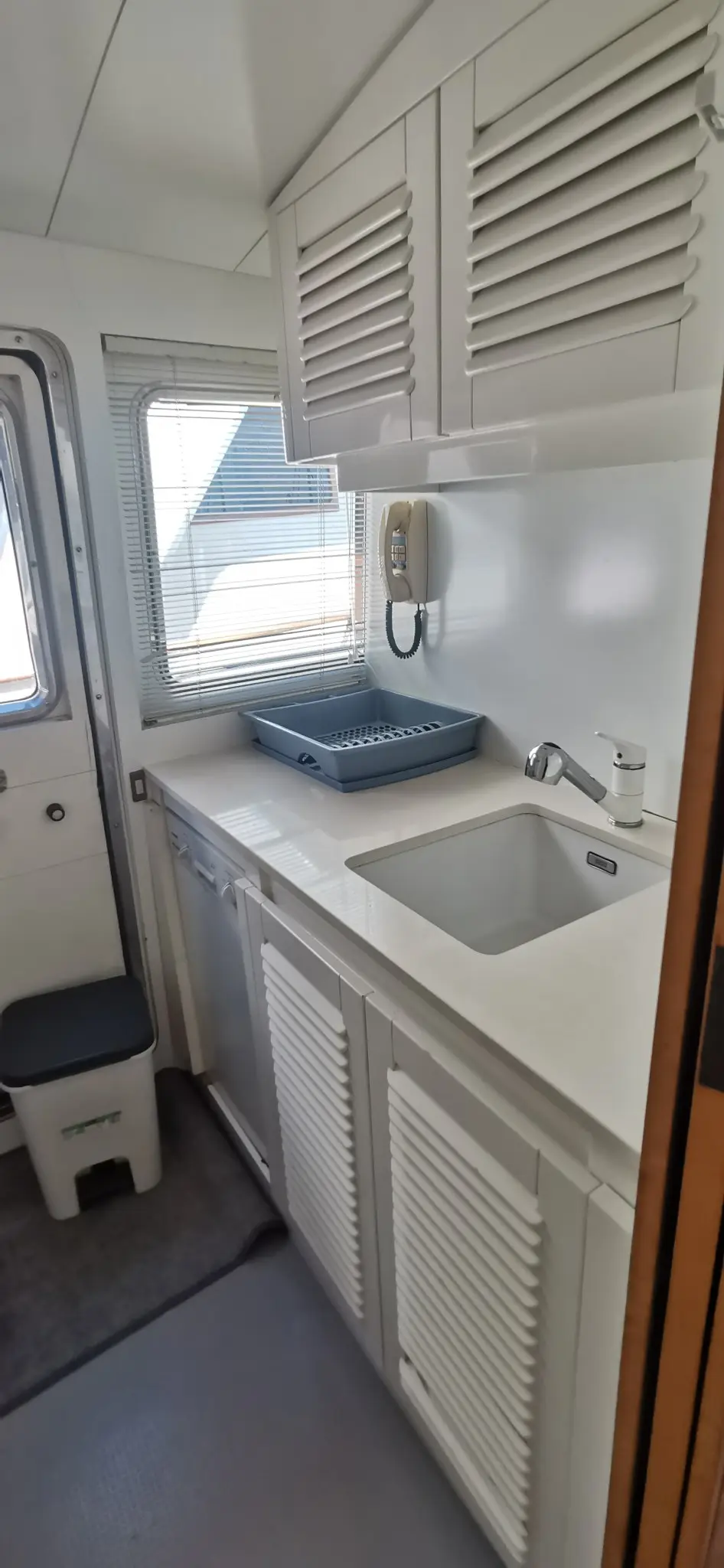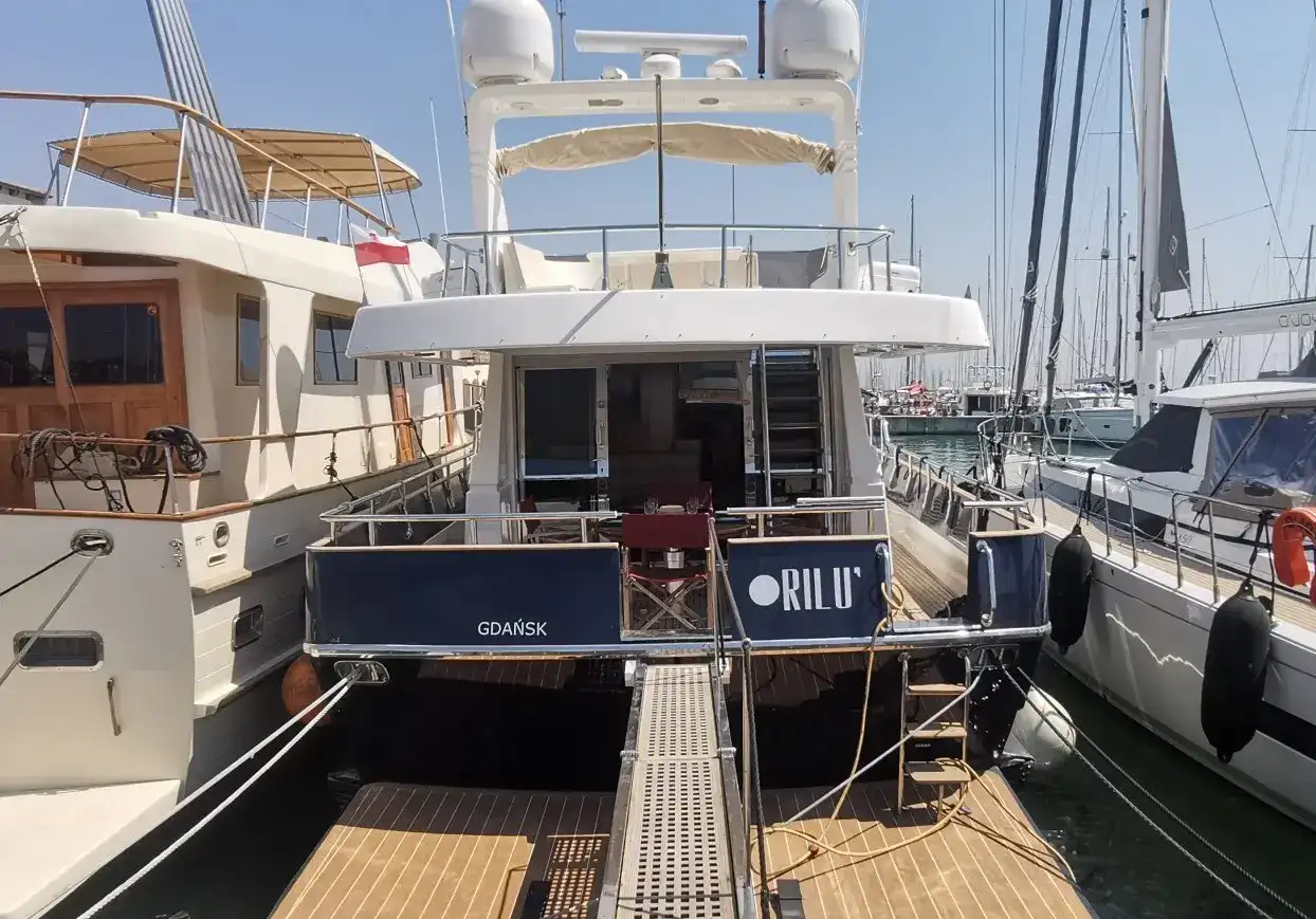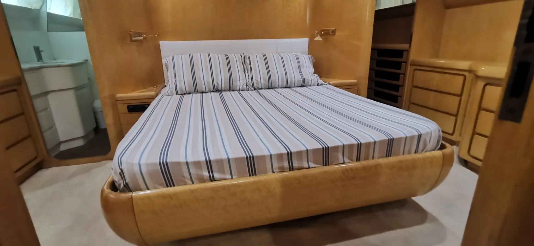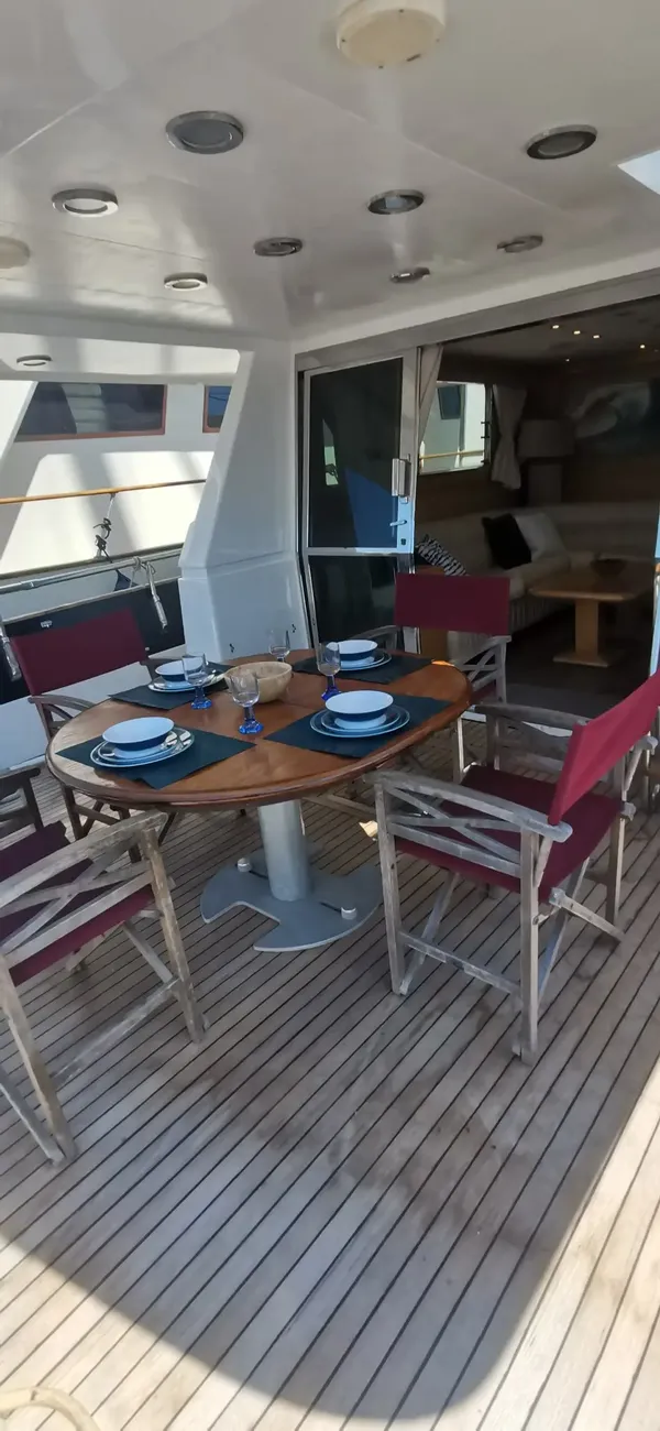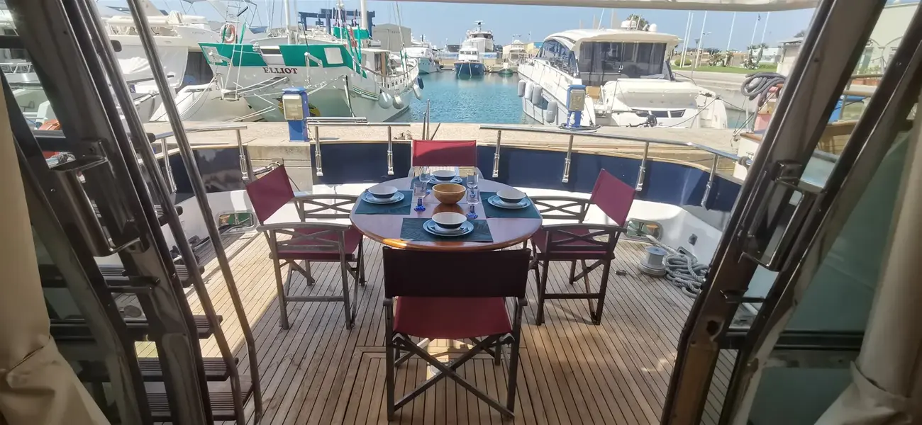 1988 boat, total Refit 2022/2023, new gunwale, engines replaced new in 2017, engines landed in 2025, the right brought to 0 hours and the left complete service, engine room camera, appliances as new, stereo in all cabins, external 24v direct current sockets. Double master cabin with ensuite bathroom and walk-in closet, twin guest cabin with single beds and en-suite bathroom, double guest cabin with en-suite bathroom, sailor cabin with bow facilities, double saloon with double sofa and table, separate kitchen with ceramic hob, oven, sink, fridge and dishwasher, large cockpit with table, folding table on the fly with L-shaped sofa, bridge on the fly with instrumentation, comfortable sundeck in the bow, oversized aft platform. Document not valid for contractual purposes. information as provided to us is correct but not guaranteed. Mediation fees 5% + VAT on the purchase price and not less than € 2000 + VAT. Navigation equipment: Electronic engine control, GPS (Raymarine E80), Intercom, Autopilot (Raymarine ST6002), VHF Radio (Raymarine RAY218E), SSB. Staging and technical: Fume/Gas Detector, Bilge Alarm, Water pressure pump, 20 Batteries, Teak Side Decks, Deck Shower, Twin Steering, Directional Spotlight, Hydraulic Flaps, Fire Extinguishing System, Flaps Indicators, Courtesy Lights, Underwater lights, Gangway (Elettrica), Platform, Entry door, Side door, Teak Cockpit, Shorepower connector, Voltage Rectifier, Electric Windlass (Lofrans 1500w 24v), swimming ladder, Saddles for tender, Waste Water Purifier System, cockpit table. Domestic Facilities onboard: Air Conditioning (Da ripristinare), Warm Water System, Watermaker, Waste Water Plant, Interior wooden floor (e moquette nelle cabine), 12V Outlets, Black Water Tank, 3 Electric Toilet. Security equipment: Radar reflector. Entertainment: Speakers (Interni ed esterni), DTV, Radio AM/FM, Hi-Fi, TV (In dinette). Kitchen and appliances: Galley, 2 Refrigerator (Di cui 1 in salone), Dishwasher, Microwave Oven (Whirpool), Ceramic hot plate (4 fuochi Siemens). Upholstery: Cushions, Bow Cushions, Fly Bridge Cuscions, Sunshade (Fly).