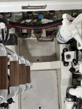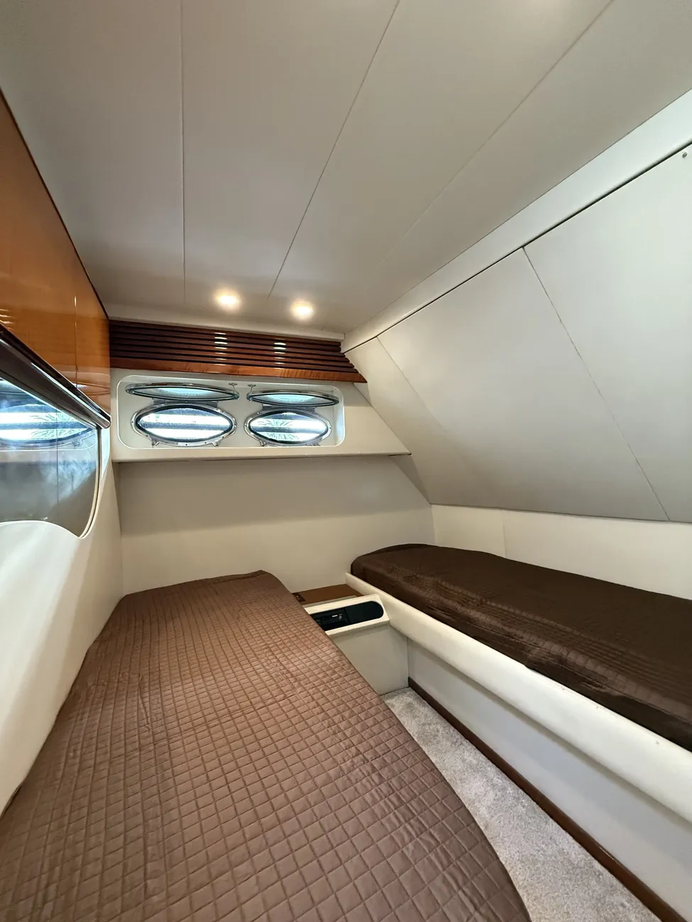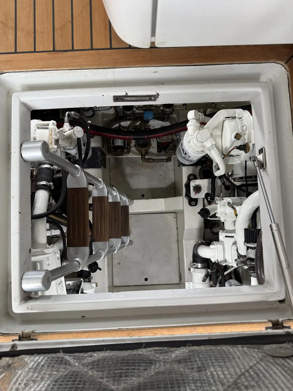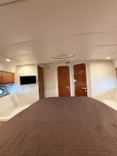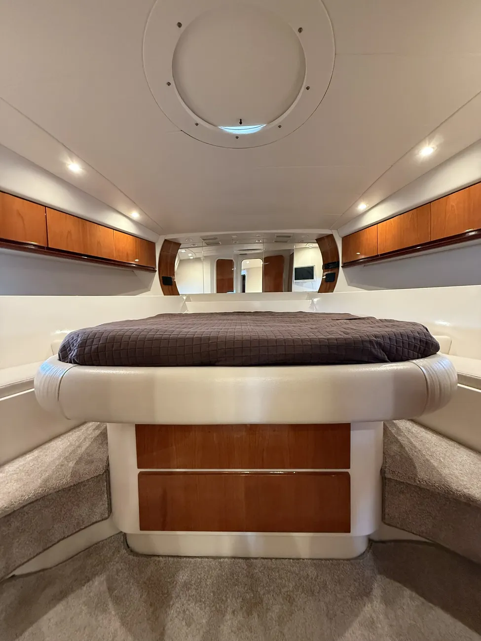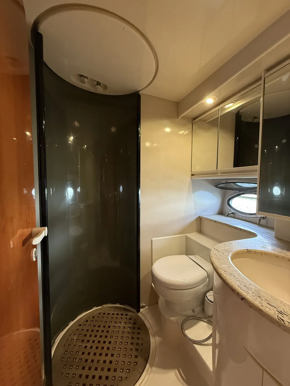 Equipped with two 660 hp Caterpillar engines, it reaches a maximum speed of 34 knots and a stable and smooth cruising speed of 26 knots, ensuring a dynamic and safe sailing experience. The technical equipment is complete: bow thruster, autopilot, GPS, plotter, radar, echo sounder, and efficient on-board electronics ensure full control in every situation.