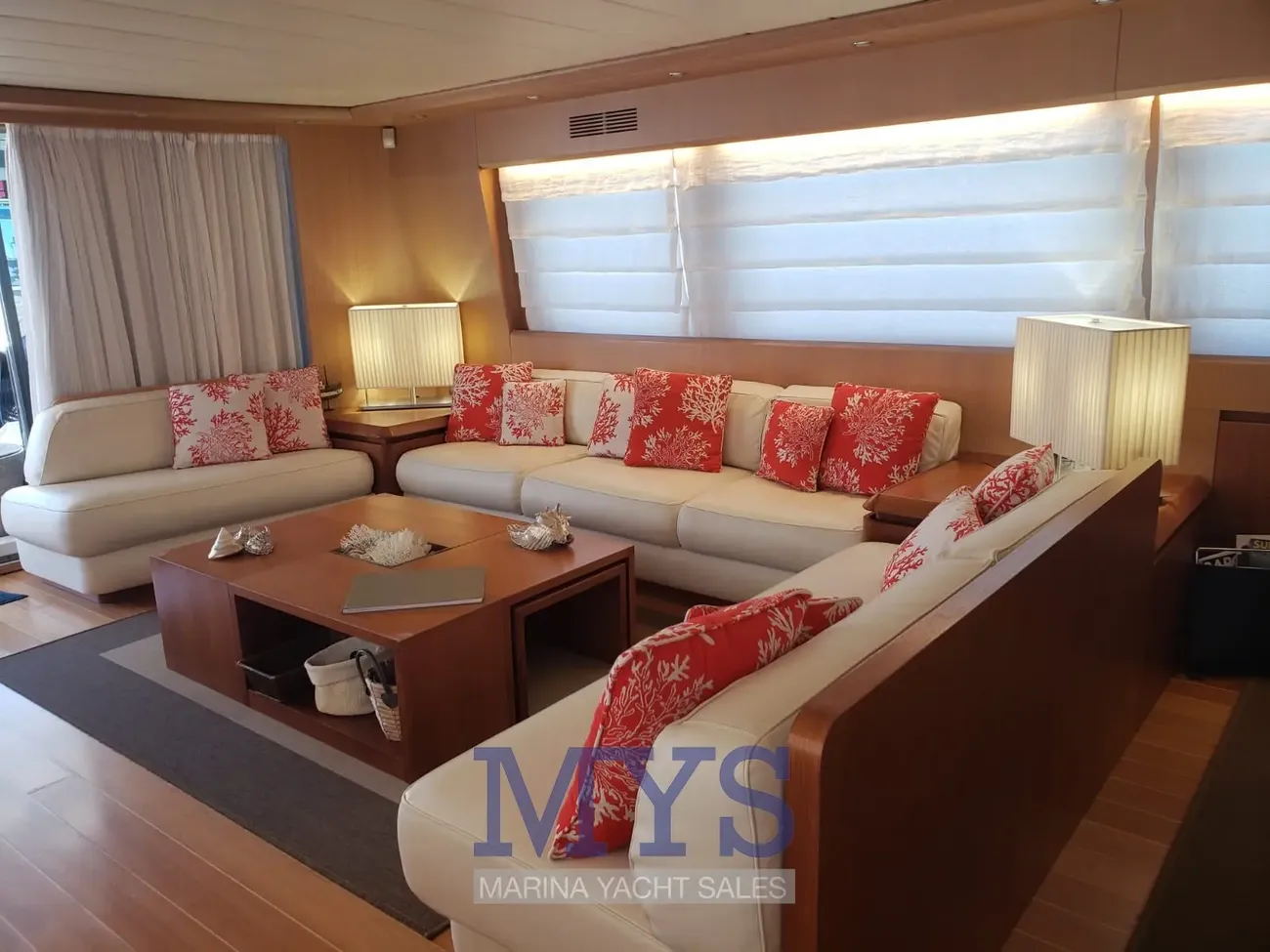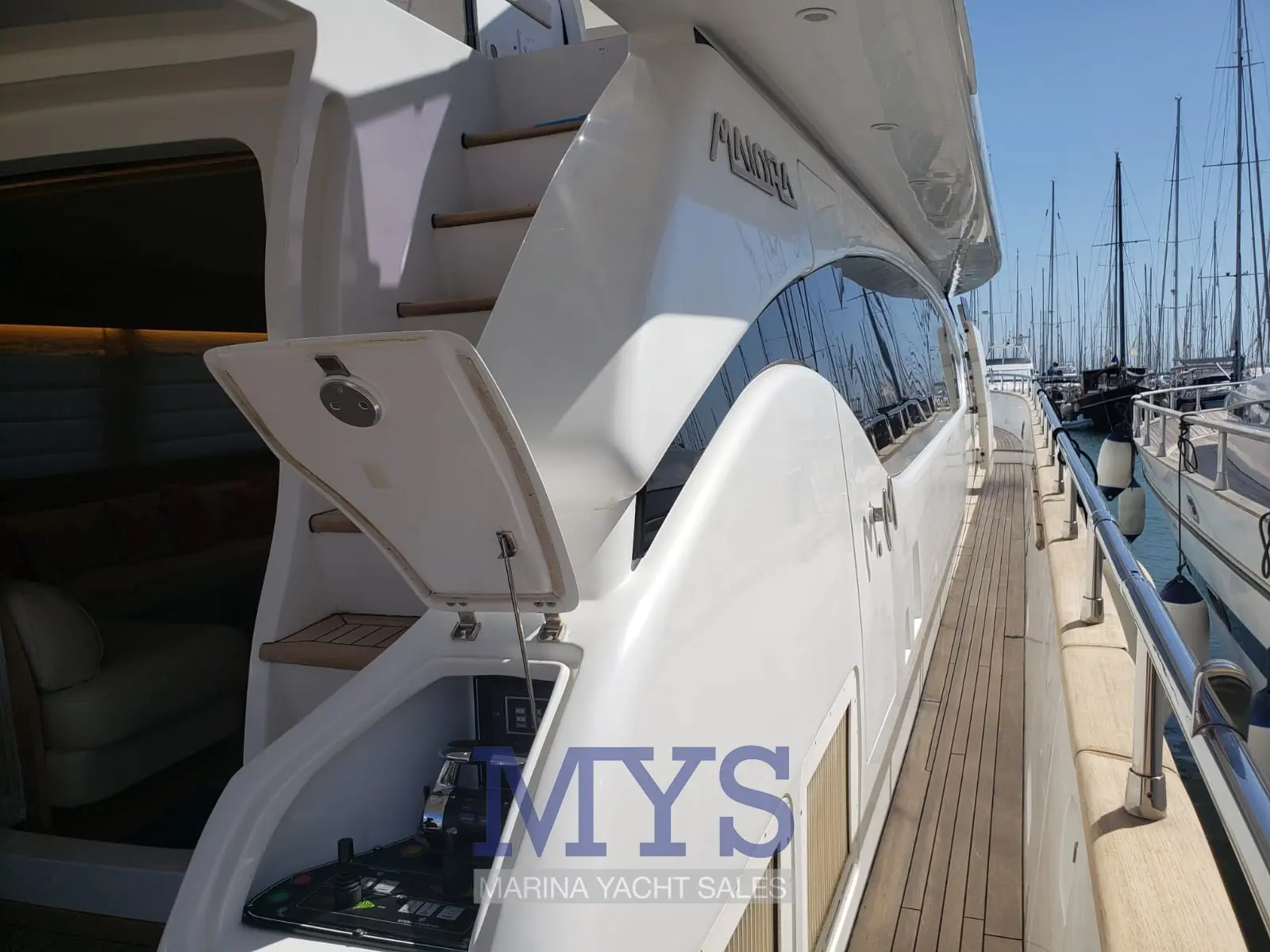 The flybridge is dedicated to outdoor life, protected by the roll-bar awning, featuring: