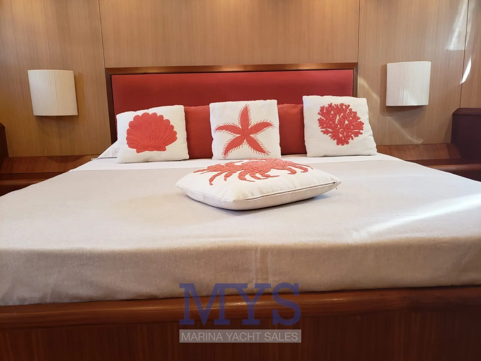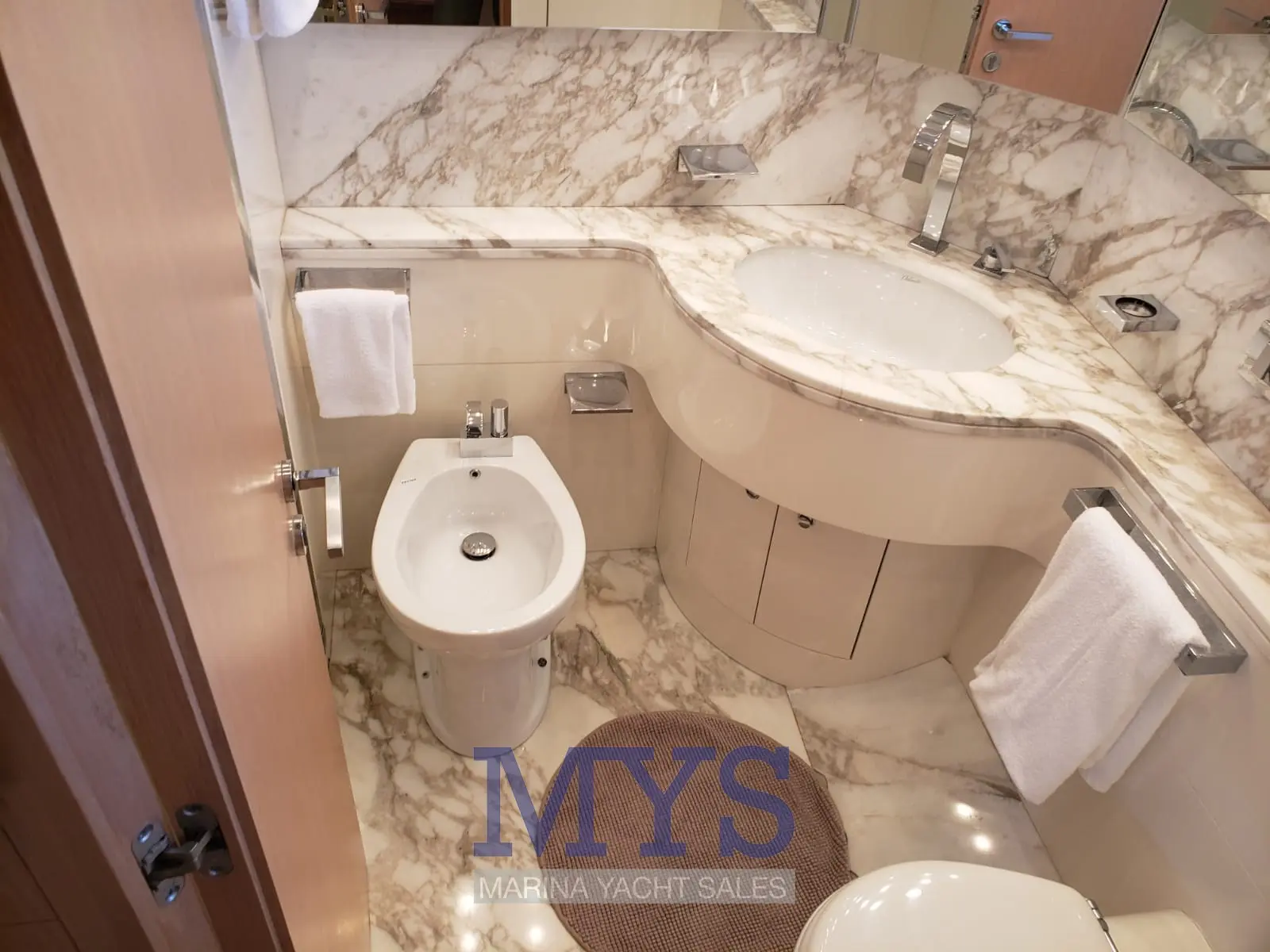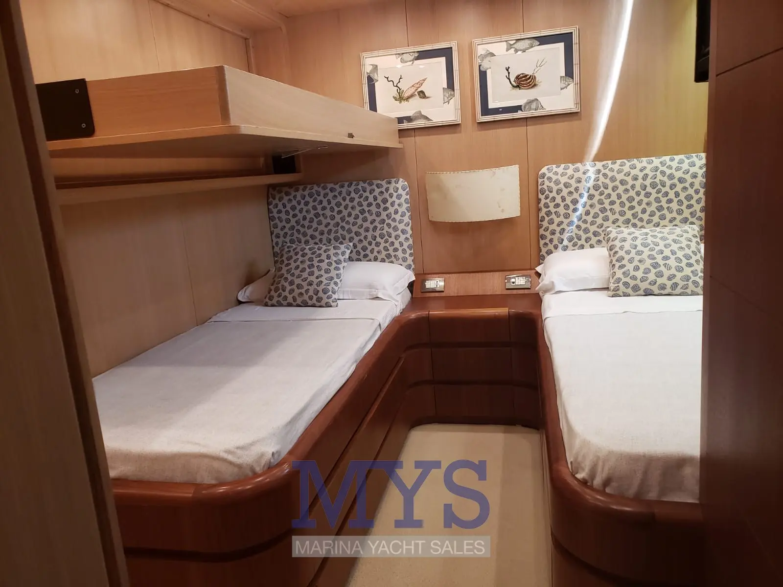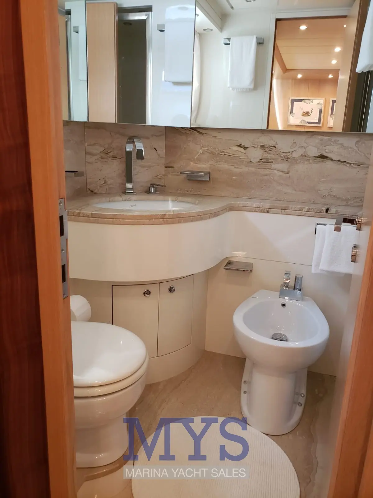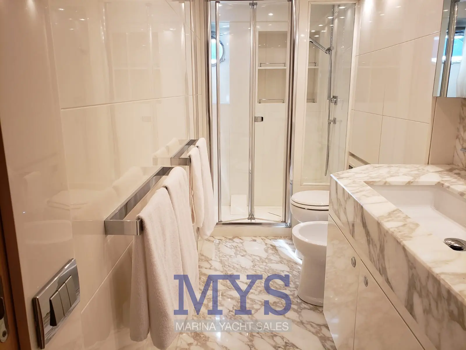 - 2 mirrored guest cabins with flat beds and retractable pullman beds