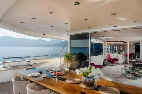 Built in steel and aluminium under Bureau Veritas classification and fully MCA-LY2 commercial compliant, she offers both technical reliability and charter readiness. Her standout design by Philip Zepter & Srdjan Djakovic offers spacious accommodation for 12 guests across 6 staterooms, supported by generous crew quarters for up to 12.