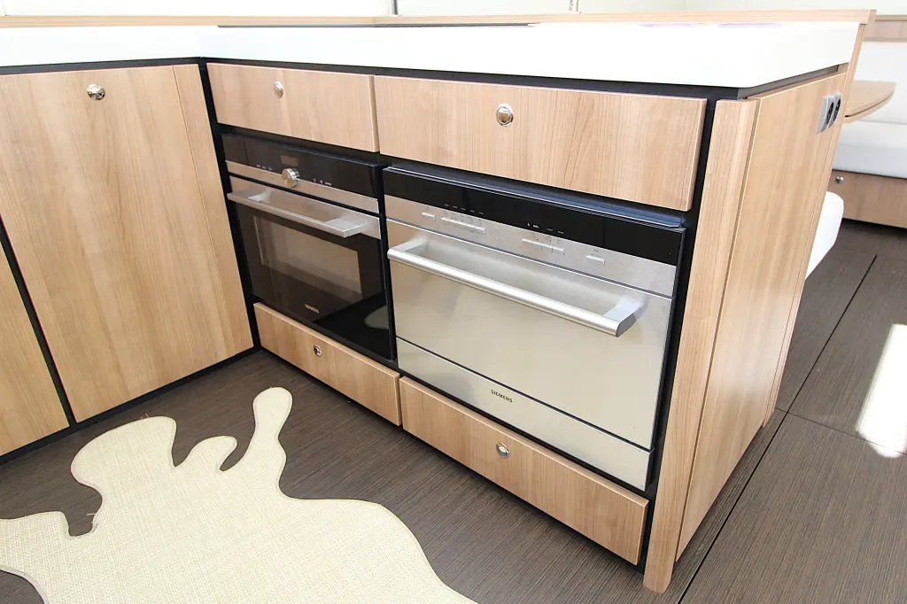 Uitrusting: Deze Linssen is uitgerust met werkelijk alle denkbare opties, zoals o.a. een complete keuken met oven/magnetron, 4 pits inductie kookplaat, vaatwasser en grote koelkast. Een wijnkoeler, sterke verwarming (geschikt voor alle seizoenen aan boord), airconditioning, zonnepanelen, ONAN generator, omvormer, etc. etc.