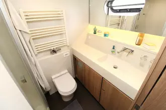 Duurzaamheid: De toiletten aan boord worden gezuiverd door een biologische Enteron Zuivering Installatie, milieuvriendelijk en zonder chemicaliën.