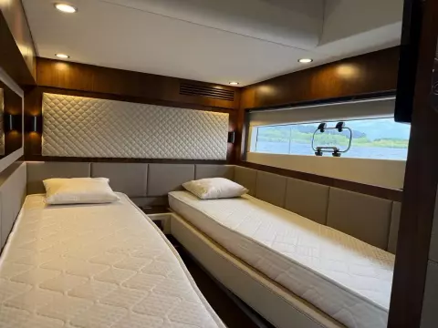 • Fwd guest cabin with twin single berth, conversion to double, access to day head / en-suite