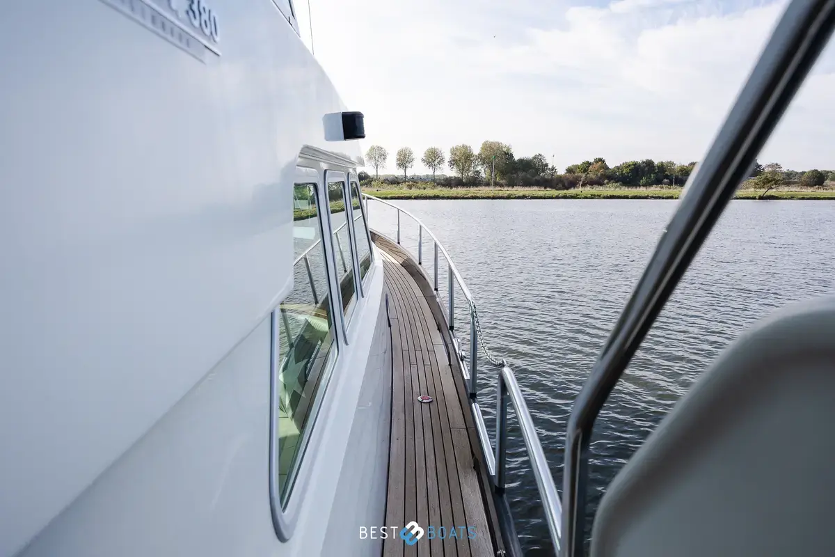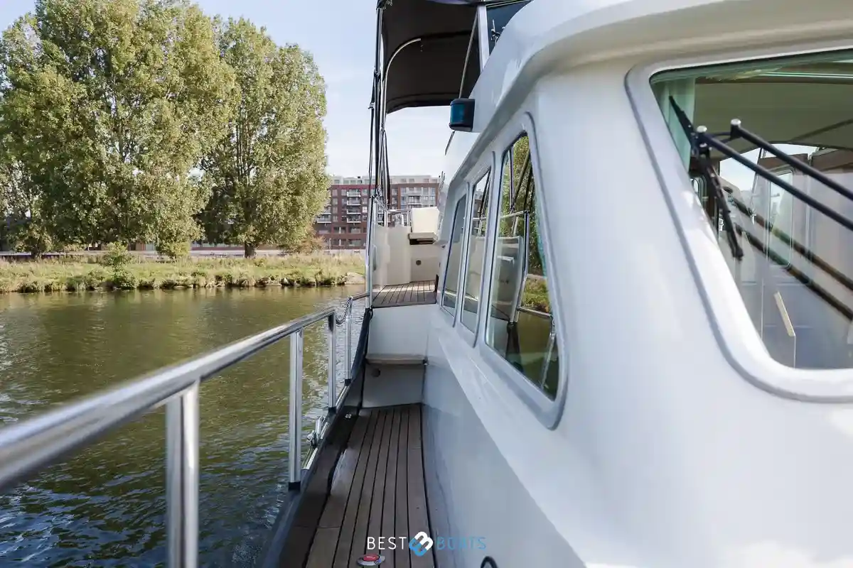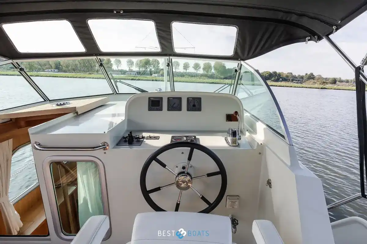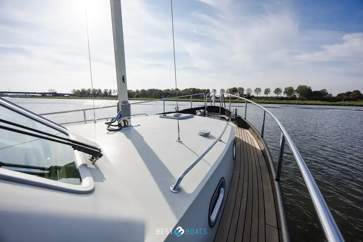 The Linssen Grand Sturdy 380 AC from 2006 is a stunning example of Dutch craftsmanship, where timeless design meets reliable technology. This steel motor yacht measures 11.50 meters in length and combines classic elegance with modern comfort. It is fully ready for carefree voyages on inland and coastal waters. Thanks to the robust Vetus Deutz diesel engine with 114 hp and only 895 hours of operation, you can enjoy quiet, dependable performance. The multi-chine hull ensures stability, course-keeping, and a comfortable ride.