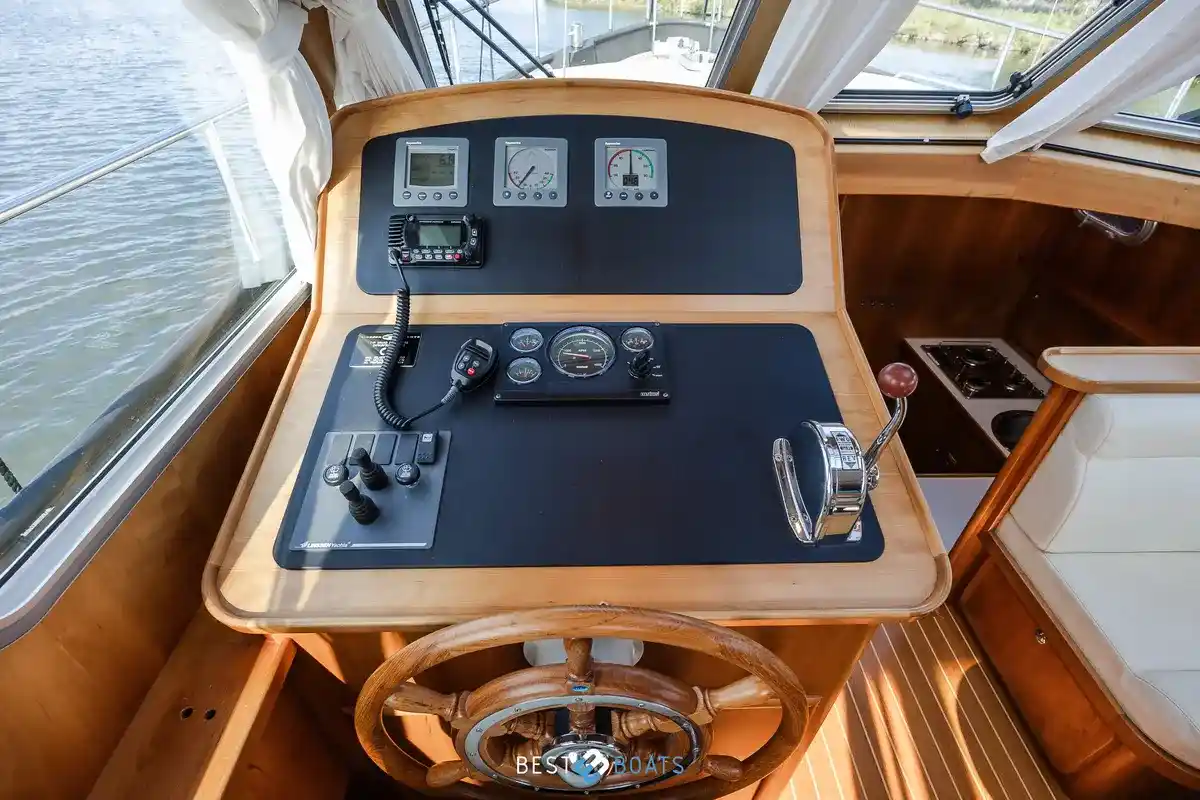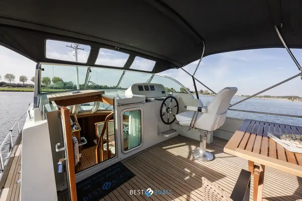 Safety is always a priority at Linssen. This Grand Sturdy is equipped with an automatic fire extinguishing system in the engine room, an electric bilge pump, and a self-draining cockpit. Thanks to its solid construction and CE certification B, the vessel is suitable for coastal waters and can safely navigate in winds up to 8 Beaufort and waves up to four meters.