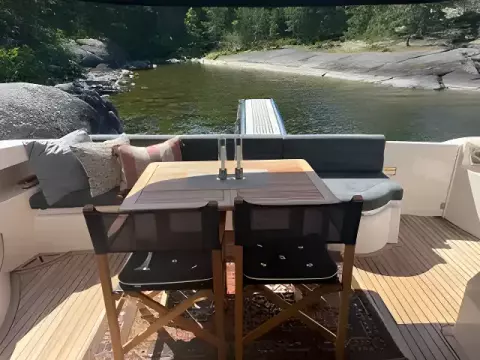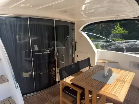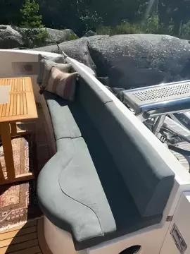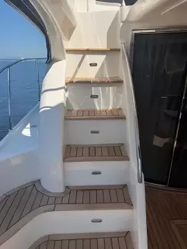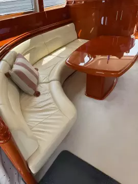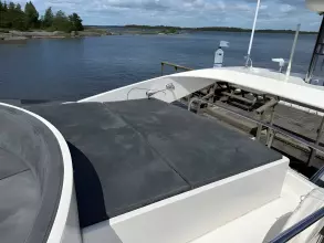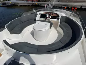 Large flybridge with seating area and sun loungers – perfect for relaxing and entertaining.