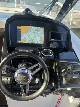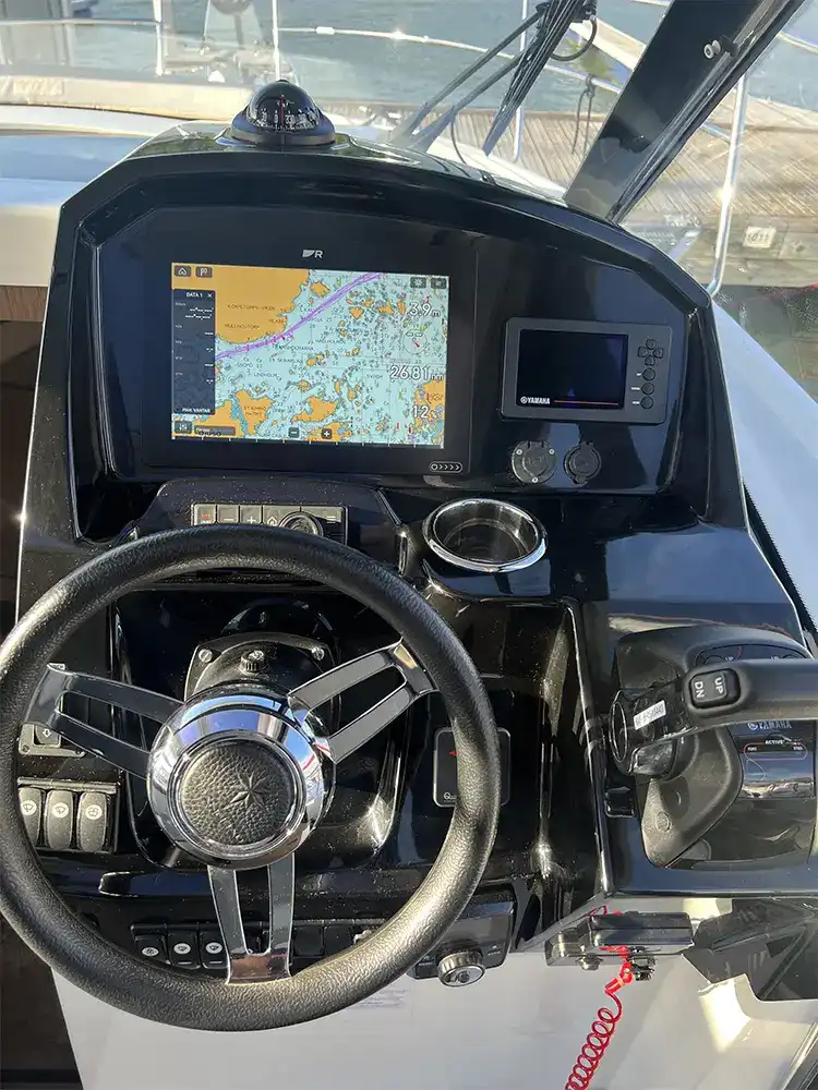 The helm station is equipped with a complete Raymarine navigation suite including: