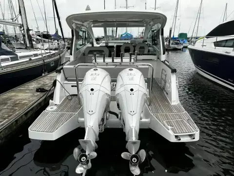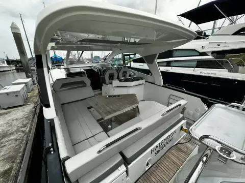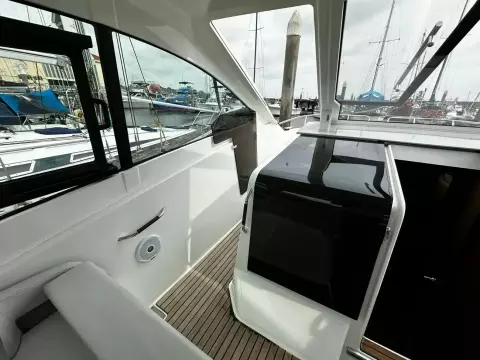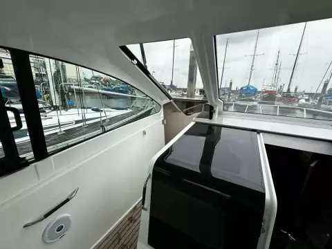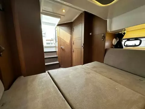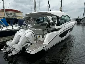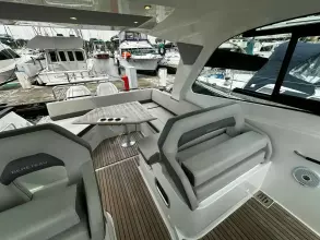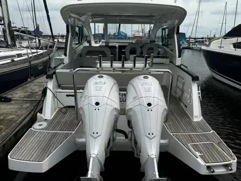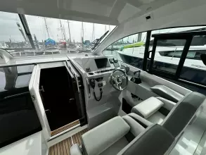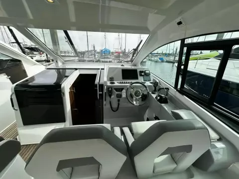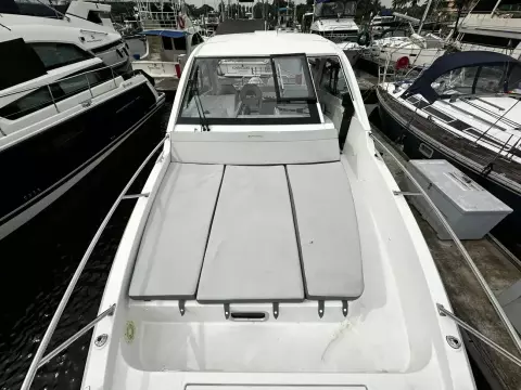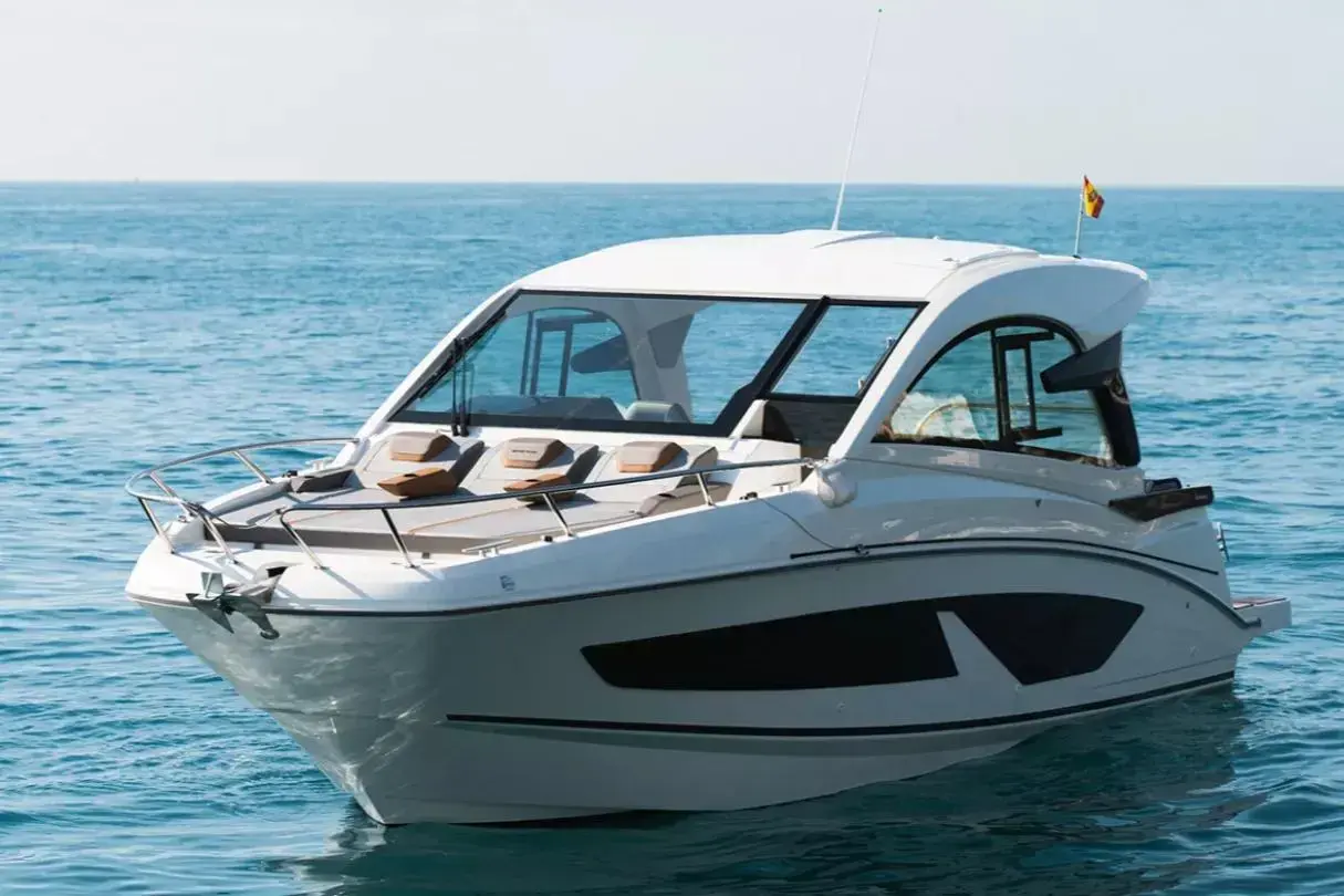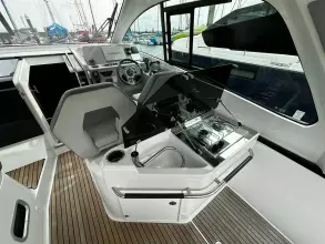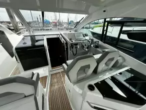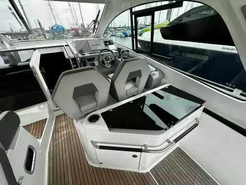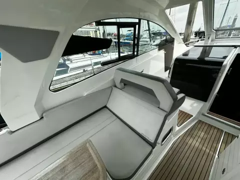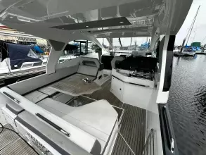 With sleek, modern lines, this vessel boasts a well-connected and spacious cockpit and bow area, alongside an exceptionally roomy interior that features two cabins in a 32ft frame.