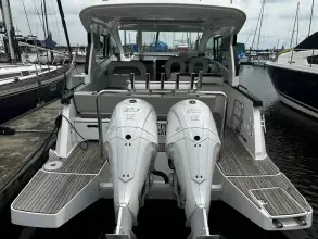 Powered by a pair of famously reliable Yamaha 300hp v6 outboards will reach speeds up to 35 knots in absolute comfort.