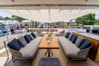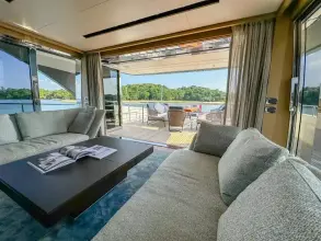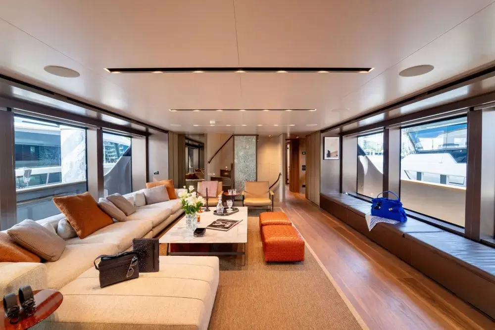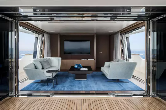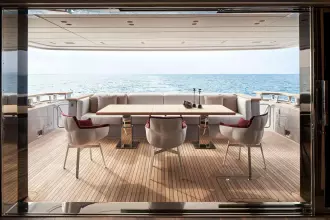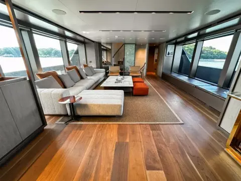 This SD96's impressive interior volume is enhanced by Sanlorenzo's timeless lines and expanded internal spaces, delivering expansive living areas rarely found in a yacht of this size. The spacious flybridge is among the largest in her class, featuring both indoor and outdoor guest spaces and refined furnishings from renowned Italian brands such as B&B, Cassina, and Roda - perfect for relaxation and entertainment in style.