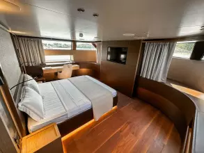 Equipped with zero-speed stabilisers, a hydraulic stern thruster, and a comprehensive suite of navigation and entertainment systems, this vessel combines comfort, seaworthiness and craftsmanship to perfection.