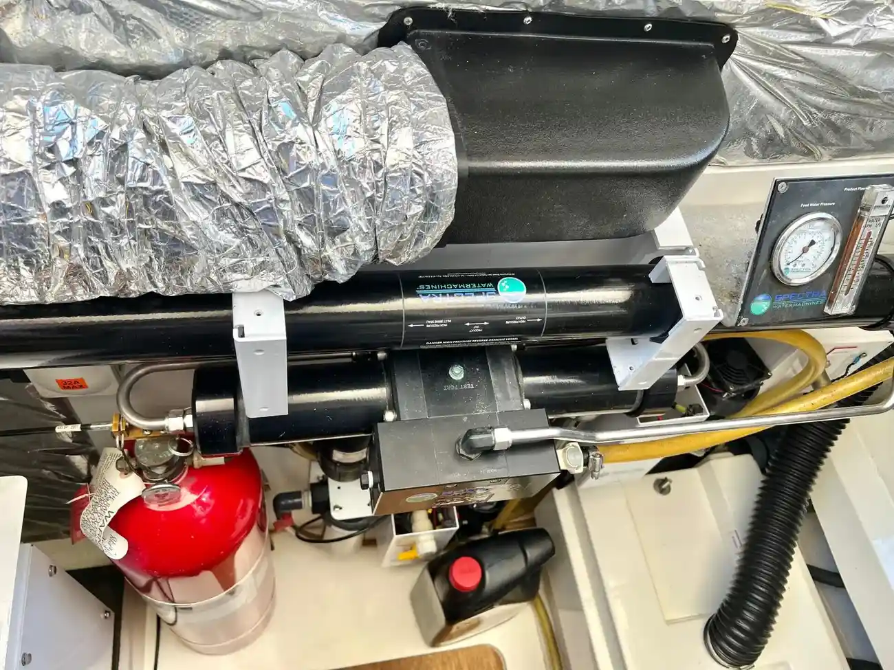 - Hydraulic fold-out tender crane fitted in transom locker with 250Kg capacity