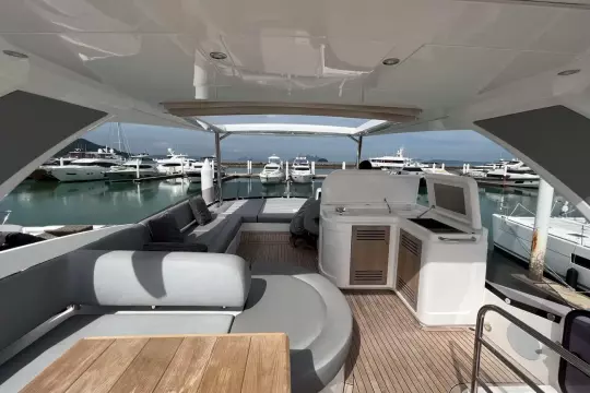 • Transom 'beach club' with barbecue, retractable seating, and overhead rain shower.