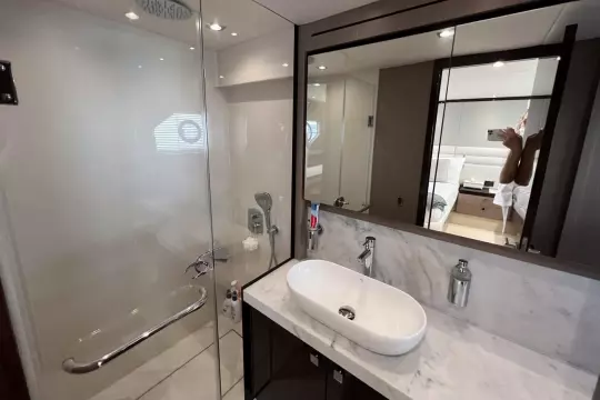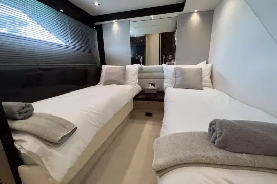 • Two spacious twin cabins, a forward VIP suite, and a full-beam master cabin.