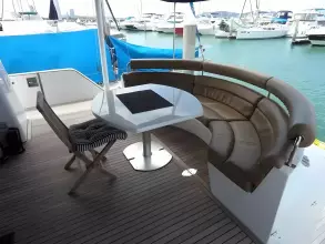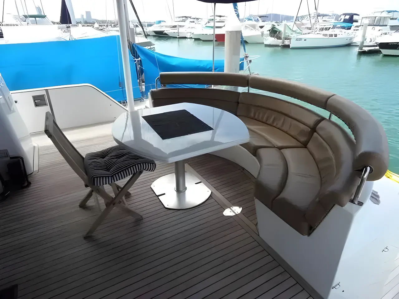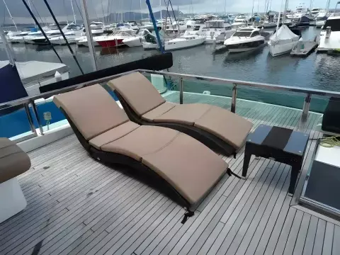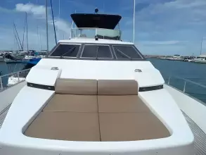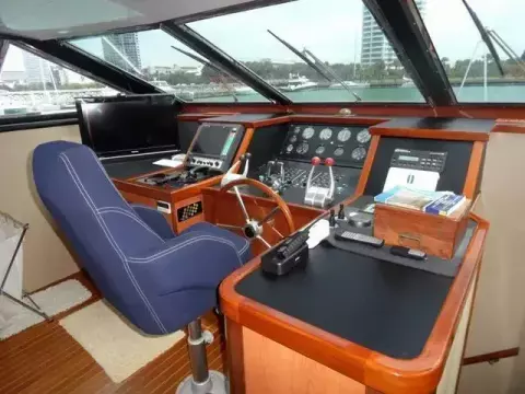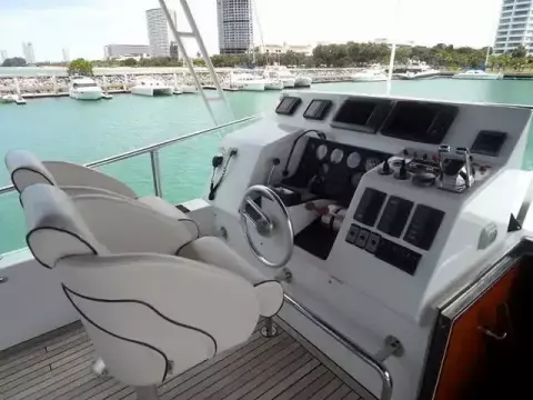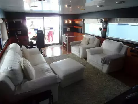 This Azimut 76 Flybridge Motor yacht from 1989 is lying in Pattaya and since new has always been kept in Thailand. She has entertained many famous Thai VIP's. She features a large well covered fly bridge, total of 4 double cabins, each ensuite, separate galley, helm and an office at the master cabin. Spacious saloon, all fully air conditioned. Original asking price in THB 27 million.