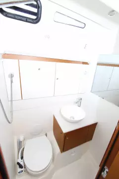 Sail Plan: 9/10 fractional sloop rig, in-mast furling option, furling genoa, full-batten mainsail available.