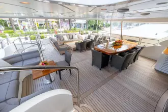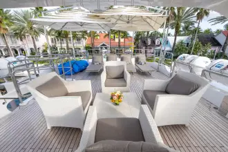 This Benetti Classic 120 is truly unique. For the past six months, she has undergone a transformation. Every system has been either rebuilt, refurbished, restored or replaced. We have detailed pictures, and receipts documenting it all. From the hull bottom to the sun deck, nothing has been missed. Additionally the interior is tastefully done, and all brought back to its original luster. Soft, natural wood adorns the floors and furnishings. Not the high-gloss with gold trim that was customary in Benetti yachts of this vintage. Moreover her teak decks and hull sides show like new. The current owner is motivated, as he has purchased his next yacht; a 145 Benetti. He loves the builder. But this yacht must go quickly. For a deal that is documented within the next thirty days, he will add the 37 foot tow tender to the deal. She is also nicely restored. This in addition to the 2 jet skis, 2 sea bobs, rescue tender and other assorted charter toys come with the sale.