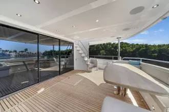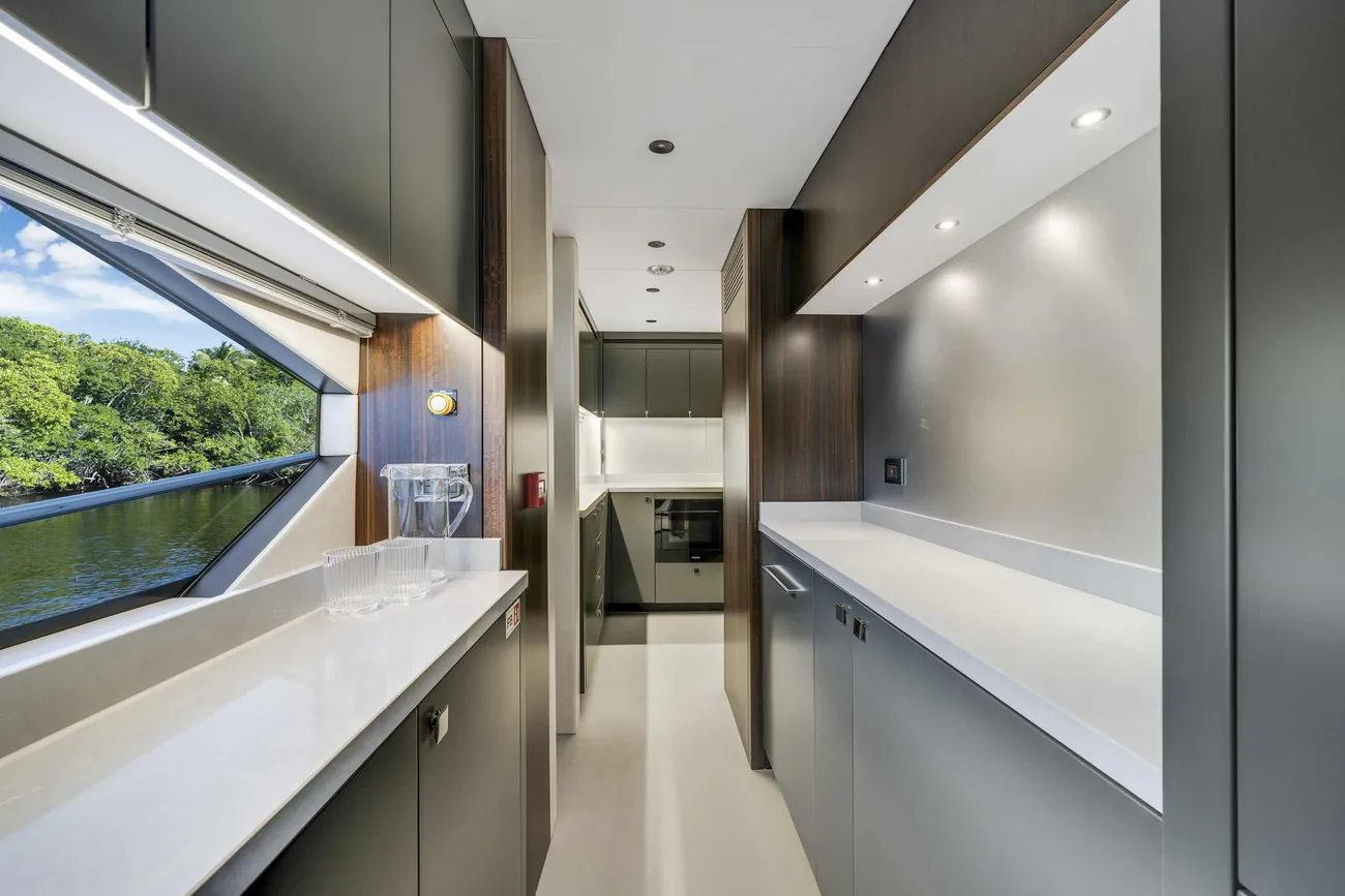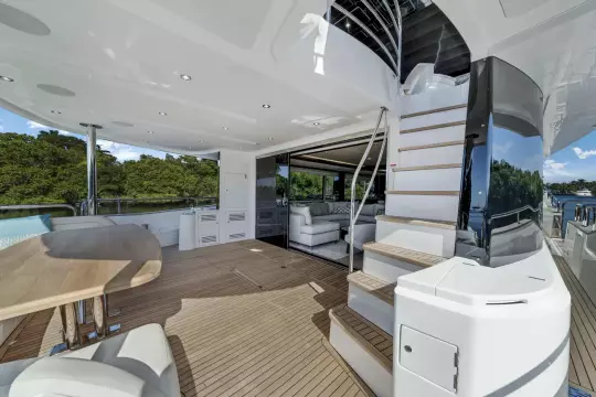 Imagine entertaining on the expansive flybridge, complete with Jacuzzi, full wet bar, dining area, and sun loungers. Host elegant cocktail evenings with city skylines in the background, or enjoy family lunches at anchor in crystal-clear Bahamian waters.