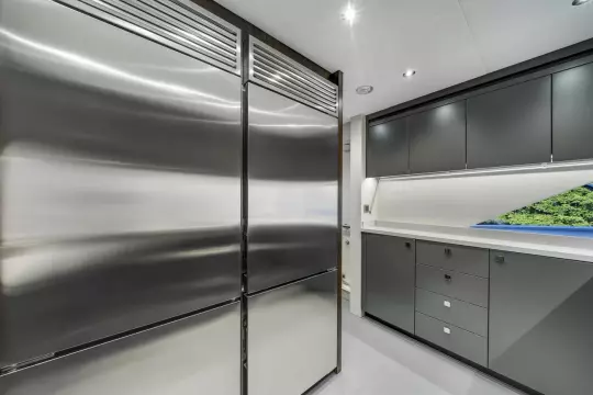 Integrated access to the galley and laundry facilities ensures the crew can perform their duties discreetly and effectively, maintaining the pristine condition and smooth running of the yacht at all times. Ample storage lockers and well-designed ventilation complete the living quarters, creating a professional environment that supports long-range cruising and charter operations.