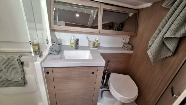Every detail, innovation, and material, inside and out, has been carefully designed to elevate your sailing experience, whether sailing solo or with family. The bow cabin also offers additional space, perfect for a crew member or for guests.