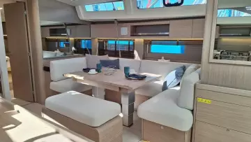 Moving between the companionway and the lifting swim platform is made easy by the twin C-shaped benches, which form a diamond-shaped space.