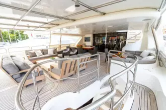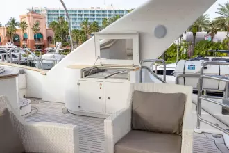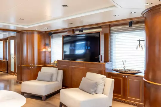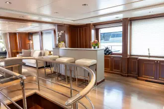 This Benetti Classic 120 is truly unique. For the past six months, she has undergone a transformation. Every system has been either rebuilt, refurbished, restored or replaced. We have detailed pictures, and receipts documenting it all. From the hull bottom to the sun deck, nothing has been missed. Additionally, the interior is tastefully done, and all brought back to its original luster. Soft, natural wood adorns the floors and furnishings. Not the high-gloss with gold trim that was customary in Benetti yachts of this vintage. Moreover, her teak decks and hull sides show like new. The current owner is motivated, as he has purchased his next yacht; a 145 Benetti. He loves the builder. But this yacht must go quickly. For a deal that is documented within the next thirty days, he will add the 37 foot tow tender to the deal. She is also nicely restored. This in addition to the 2 jet skis, 2 sea bobs, rescue tender and other assorted charter toys come with the sale.