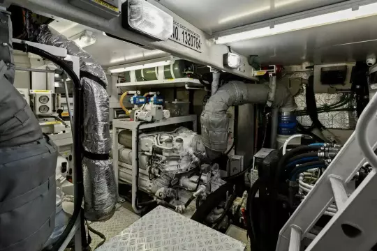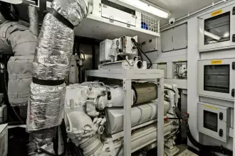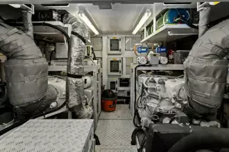 Engines: Powered by twin 1600 HP MTU engines, this yacht cruises effortlessly at 26 knots. Whether you're out for a leisurely cruise or seeking exhilarating performance, this yacht delivers.