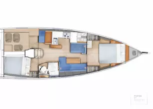 The Lombard-designed, hard chine hull combined with a high aspect cathedral rig, ensure this boat delivers on its high performance aspirations. The fine entry wave piercing bow significantly reduces drag, while giving the boat a distinctive look. In addition, careful consideration has been put into weight distribution and balance in the sail plan, bringing a new level of performance to the Sun Odyssey line. Even the most competitive sailor will love the speed, responsiveness, and ease of handling while at the wheel.