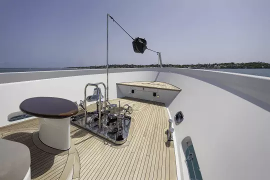 - Spacious sun deck with Jacuzzi, ample sunning space, and dining table for ten