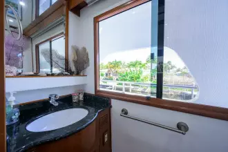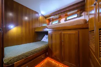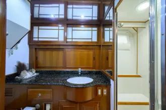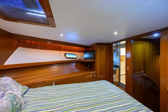 Step aboard to discover three appointed staterooms, each thoughtfully designed to provide privacy and comfort for the owner and guests alike. Accompanying these staterooms are three well-equipped heads, ensuring that everyone on board has ample space and convenience during extended voyages.