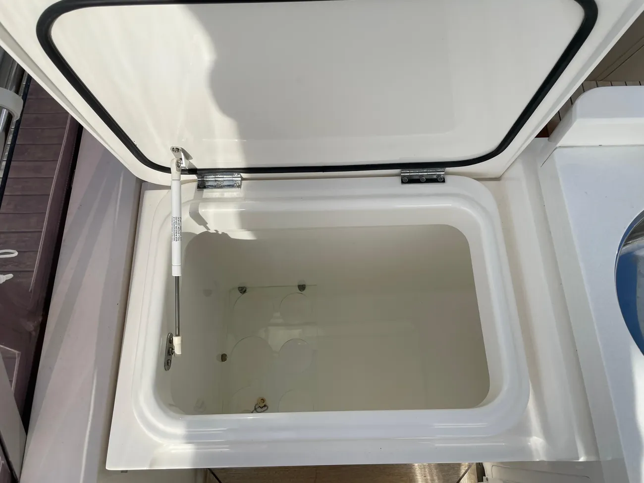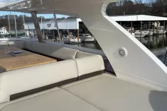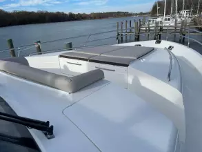 Standard is a large hydraulic swim platform for launching personal watercraft and using the swim platform as a beach in some beautiful Anchorage. Steps lead up to a stylish lounge area for entertaining, dinning or just relaxing. The aft deck has an over hang from the bridge to provide shade from the sun.