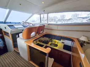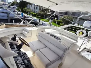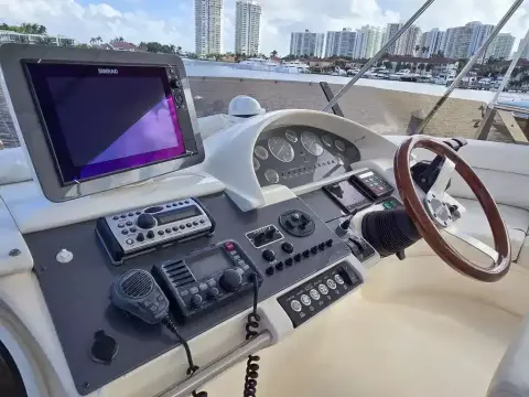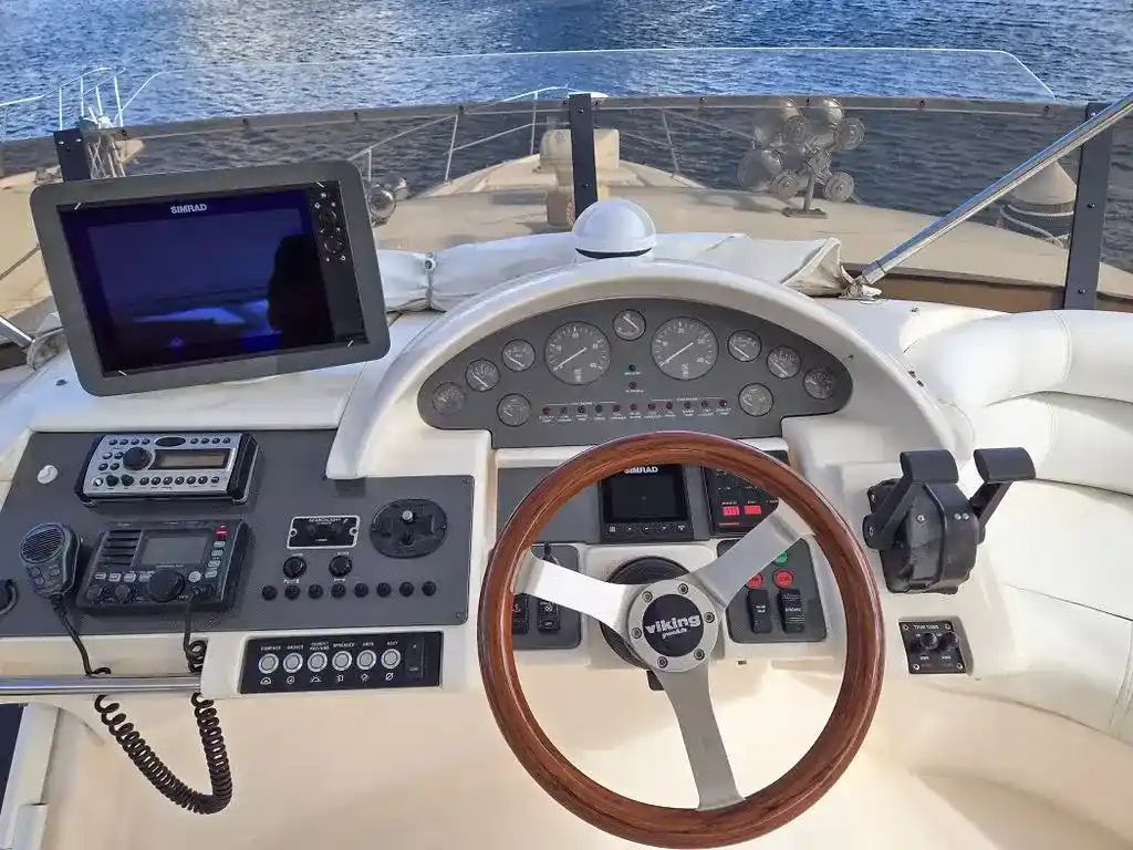 This 56’ Viking Princess Sport Cruiser stands out as an exceptional example of the prestigious line manufactured between. The vessel has been meticulously maintained under the stewardship of a knowledgeable owner who has prioritized comprehensive preventive maintenance. Recent upgrades include new Awlgrip paint finish and new updated upholstery. The yacht features touchscreen navigation electronics, a hydraulic platform, and bow thruster. It is powered by a 12KW generator with **1300 Original HOURS on CAT ENGINES. **This impeccably maintained vessel includes NEW TEAK, NEW AFTERCOOLERS AND HEAT EXCHANGERS. The interior layout offers three well-appointed staterooms and two heads. This turnkey Viking Princess Sport Cruiser represents an outstanding opportunity for the discerning buyer seeking a vessel in pristine condition.