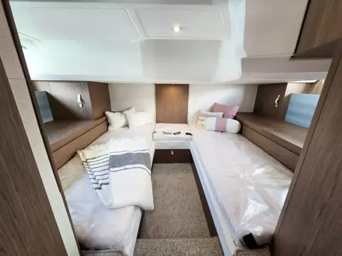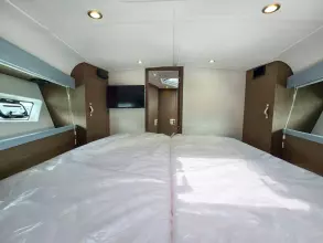 - 2 Single berths (0,70 x 1,95 m / 2’4’’ x 6’5’’) or 1 Double berth (1,40 x 1,95 m / 4’7’’ x 6’5’’)