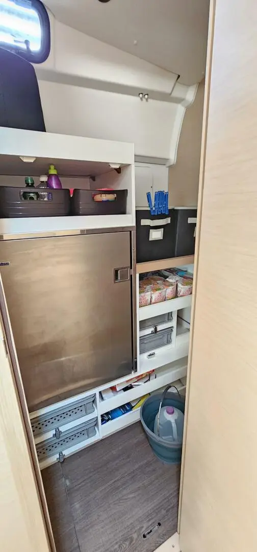- Isotherm 12V Front Loading Freezer located in the pantry