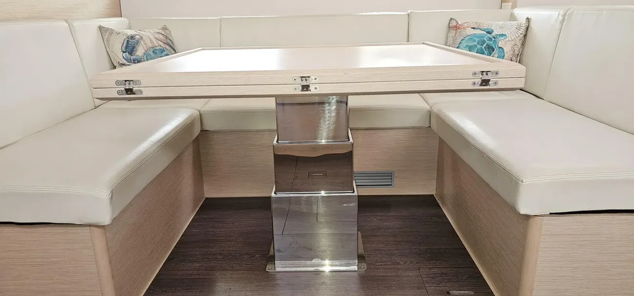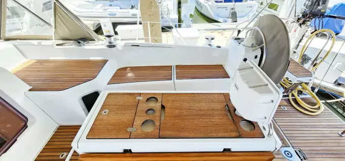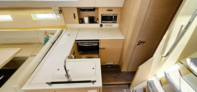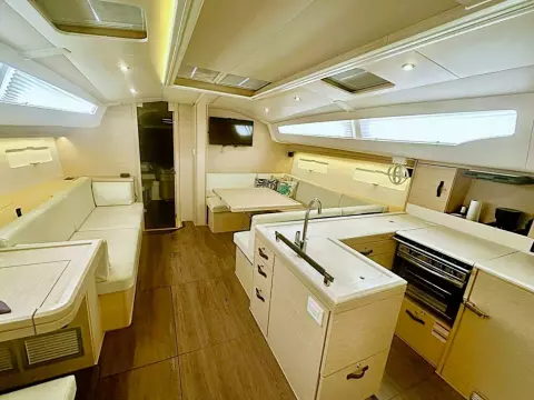 Designed by Philippe Briand, the 2017 Jeanneau 51 sailboat epitomizes luxury at sea. This model seamlessly blends comfort, performance, and elegant design into a beautiful offshore-capable cruising yacht. The saloon is airy and bright, featuring large hull windows that allow for ample natural light. The hull design ensures excellent upwind performance and solid handling. With in-mast furling, electric winches, and a bow thruster, it is very manageable for short-handed crews. Sleek and beautiful, the Jeanneau 51 has it all.