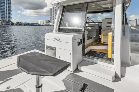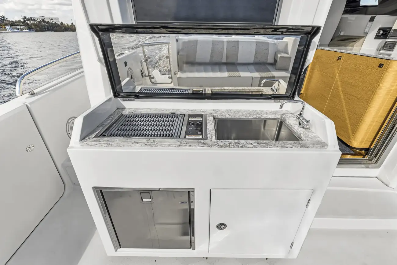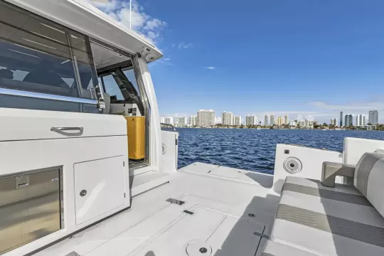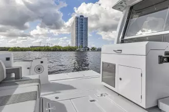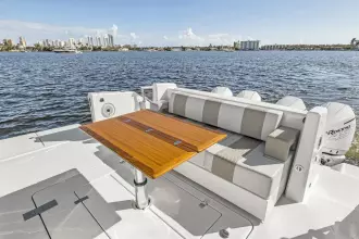 Introducing the Ocean Alexander 45 Divergence Coupe, a luxurious and versatile vessel that promises to redefine your boating experience. With its sleek and distinctive design, this yacht effortlessly blends elegance and performance, making it the perfect companion for any journey on the water. While its advanced hull design provides exceptional stability and maneuverability even in challenging conditions. Whether you're exploring coastal waters or embarking on long-distance journeys, this boat offers a remarkable level of comfort and convenience. Step aboard and be captivated by the meticulously crafted interior, featuring luxurious amenities and high-quality finishes. The spacious salon offers panoramic views, while the gourmet galley is equipped with top-of-the-line appliances, perfect for preparing meals for family and friends. The well-appointed staterooms and en-suite bathrooms provide a true retreat, ensuring a restful night's sleep. Designed for outdoor enjoyment, the Divergence coupe boasts an expansive aft deck and a large swim platform, ideal for water activities and relaxation.