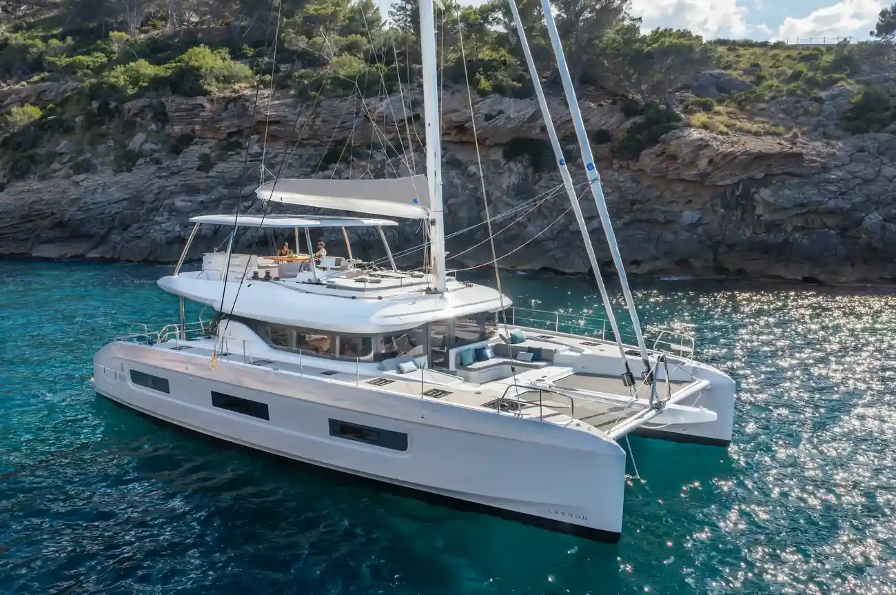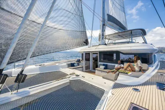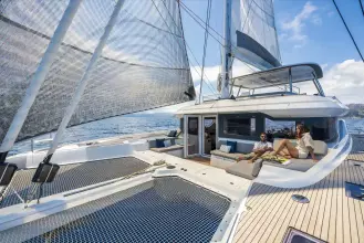 Step aboard onto the broad steps of the Lagoon 60! Her inviting aft cockpit instantly reveals its full potential. Life on board has never been so promising.