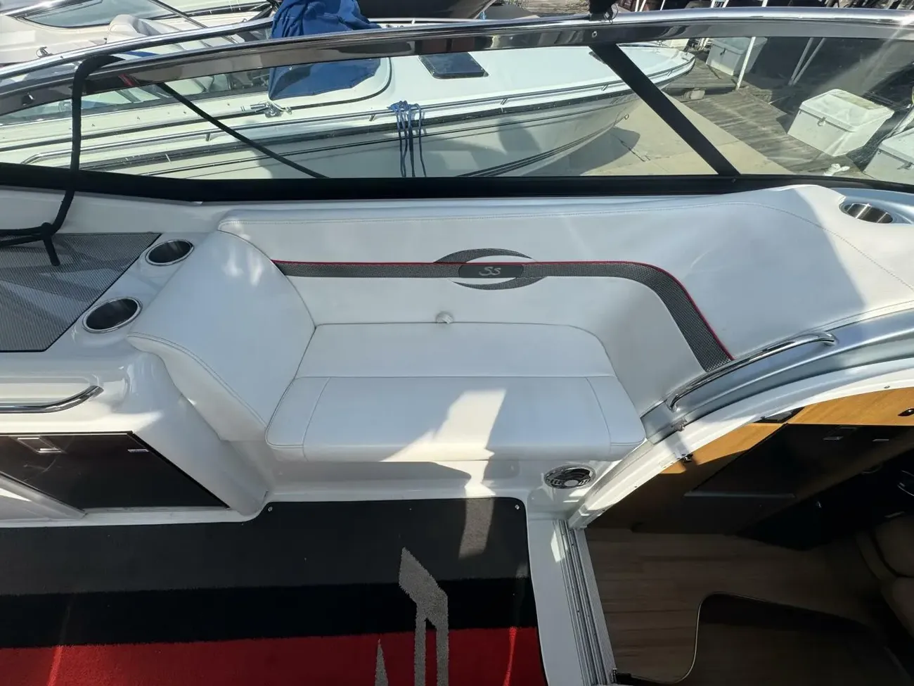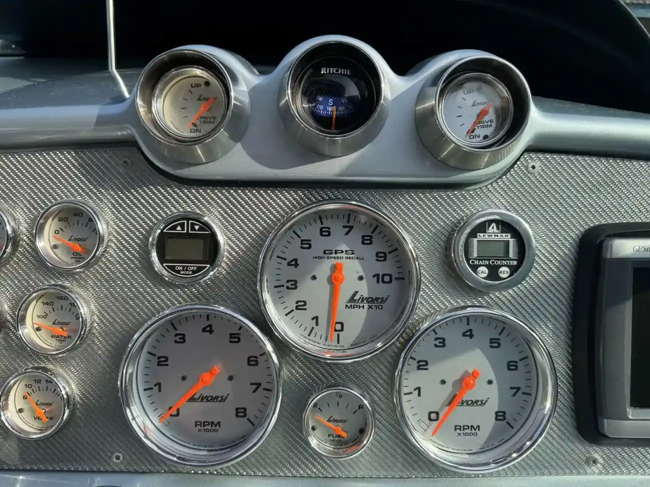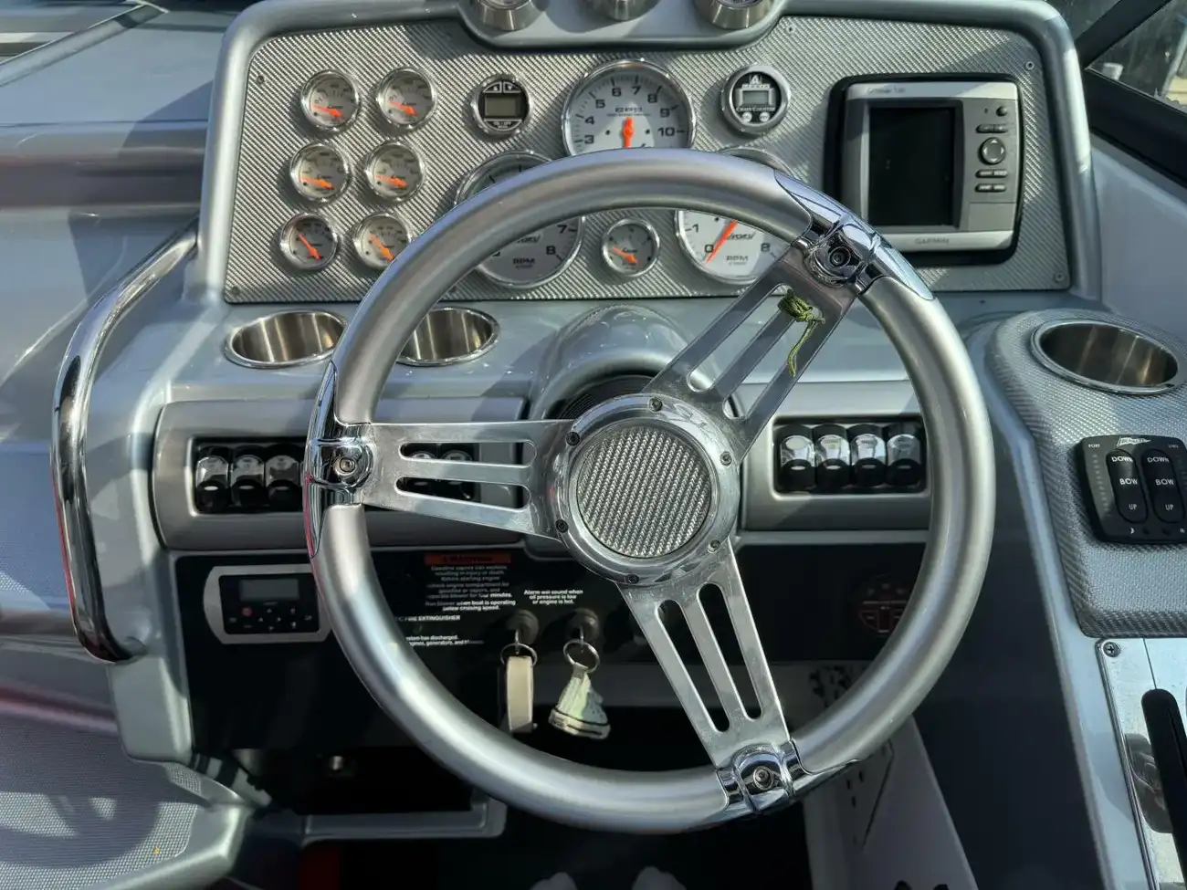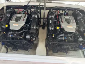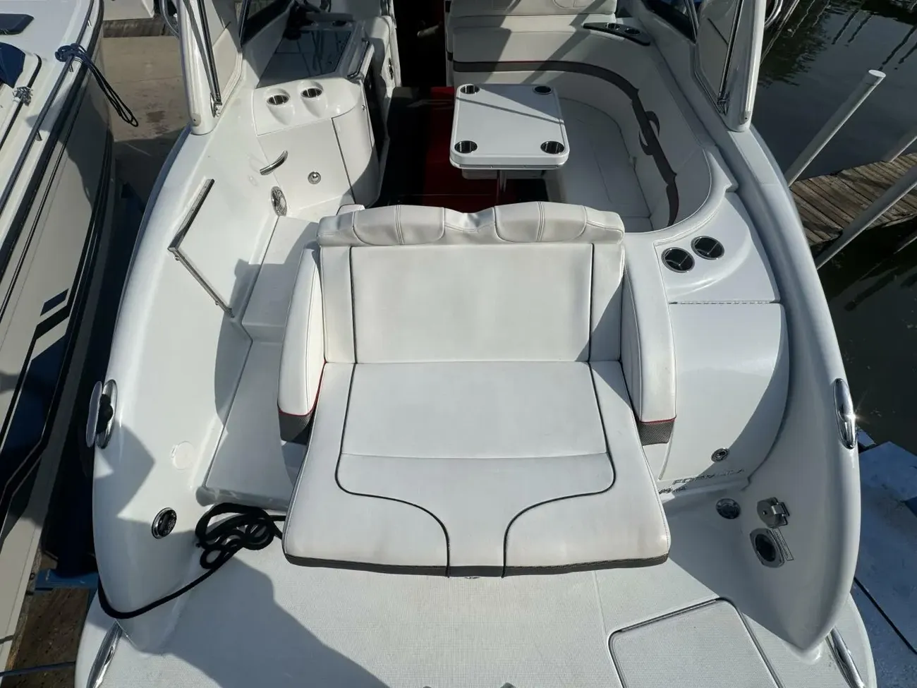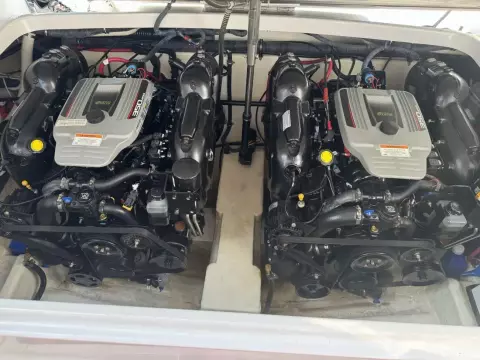 Freshwater-only, 2-owner Formula 310 SS in excellent condition with detailed maintenance records. Powered by twin MerCruiser 350 MAG motors with 490 hours per side, paired with Bravo 3 twin-prop outdrives for excellent handling and performance. Spacious cockpit seats 10 with a convertible aft sun lounge, cherry wood cabinetry, and Ultra-leather cabin. Includes paid storage for the year at Anchor Bay Marina’s premium rack facility. Top speed over 46 mph.