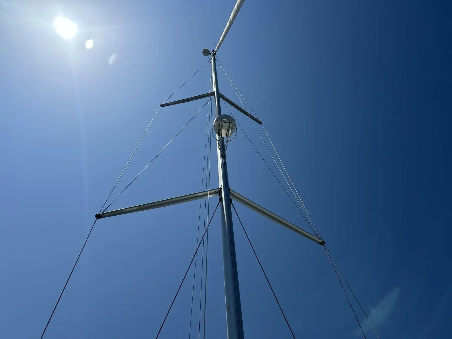 - Deck Stepped Anodized Aluminum Mast w/ Aft Swept Double Spreaders