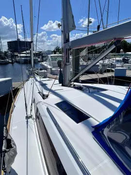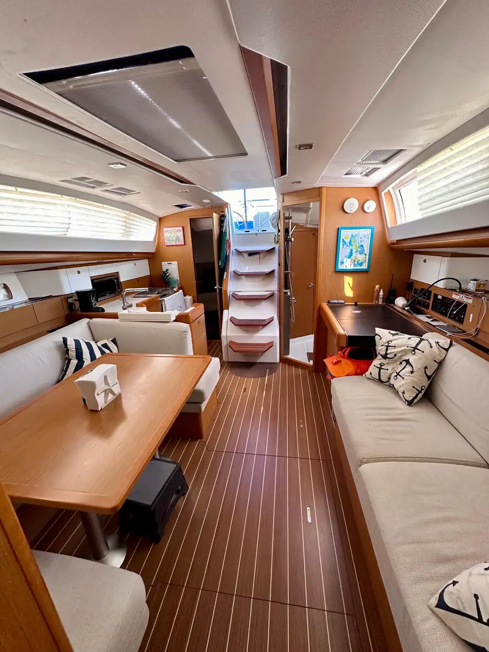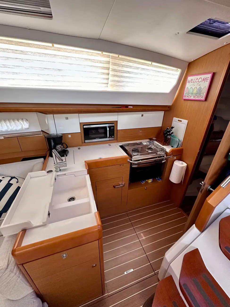 Come aboard and feel right at home. It has lots of ports and hatches, giving it beautiful natural light inside. And with the alpine interior with teak and holly floors, you're in a boat that's not only laid out wonderfully, it has a comfortable homie feel. Perfect for extended cruising or even just a weekend away.