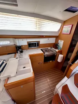 With the roller furling main and jib she is easily handled by 1 or 2 people.