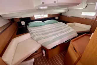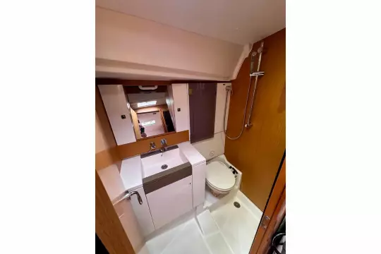This 2 cabin, 2 head layout gives you a full beam aft cabin with a semi walk around KING size island berth. A feature almost no boats in this size range offer.
