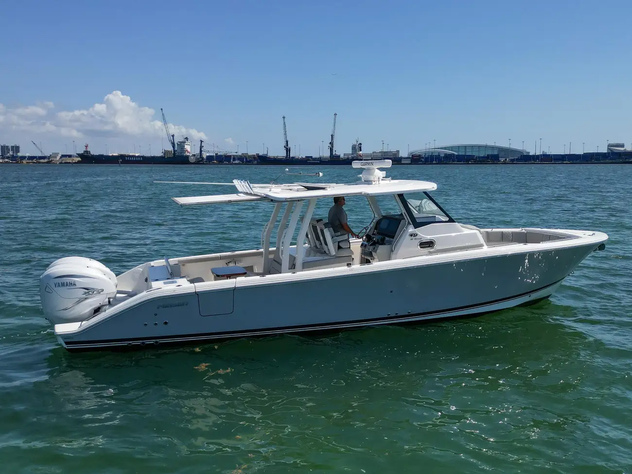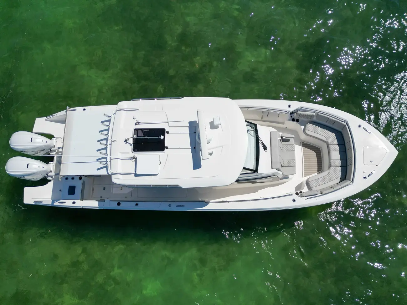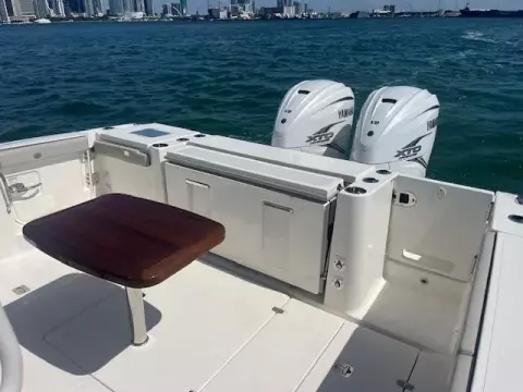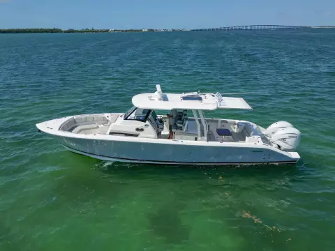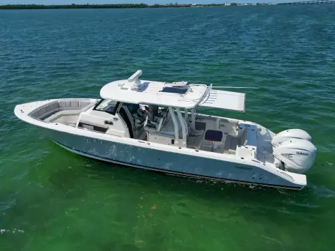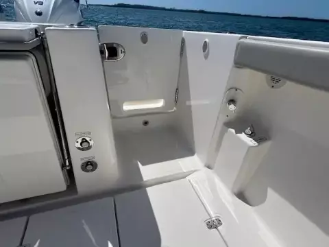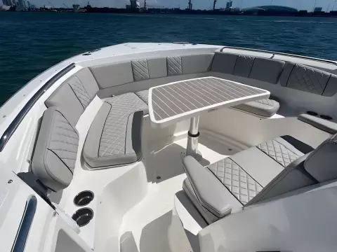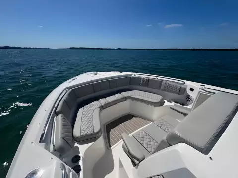 Ergonomically designed helm seating and dash for the ultimate in comfort and control. And the fact that it’s the only center console in the 34' to 35' market to have an enclosed head. Whether you are socializing on deck, driving to your secret fishing spot or taking a moment to yourself, you’ll appreciate the thoughtful craftsmanship instilled in every inch. Plus, forward-facing lounge seats in the bow, side coaming storage and built-in rod holders add to the ways you and your family can enjoy this boat.