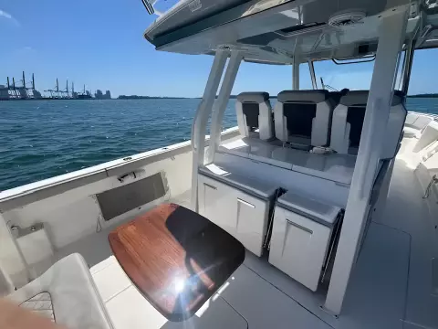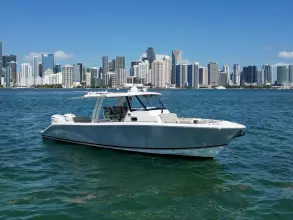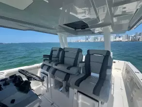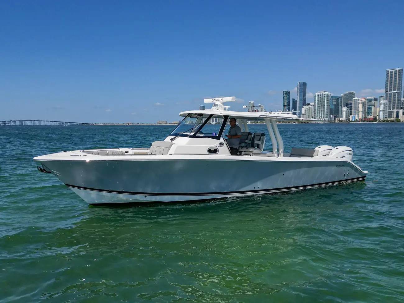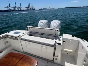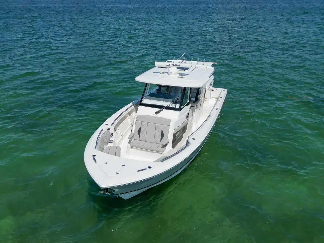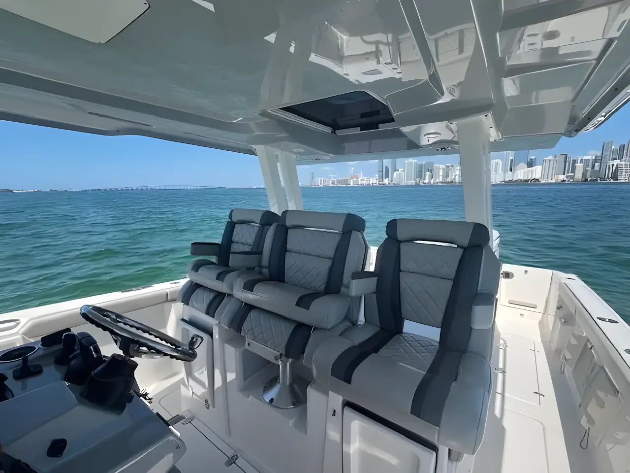 Ergonomically designed helm seating and dash for the ultimate in comfort and control. And the fact that it’s the only center console in the 34' to 35' market to have an enclosed head. Whether you are socializing on deck, driving to your secret fishing spot or taking a moment to yourself, you’ll appreciate the thoughtful craftsmanship instilled in every inch. Plus, forward-facing lounge seats in the bow, side coaming storage and built-in rod holders add to the ways you and your family can enjoy this boat.