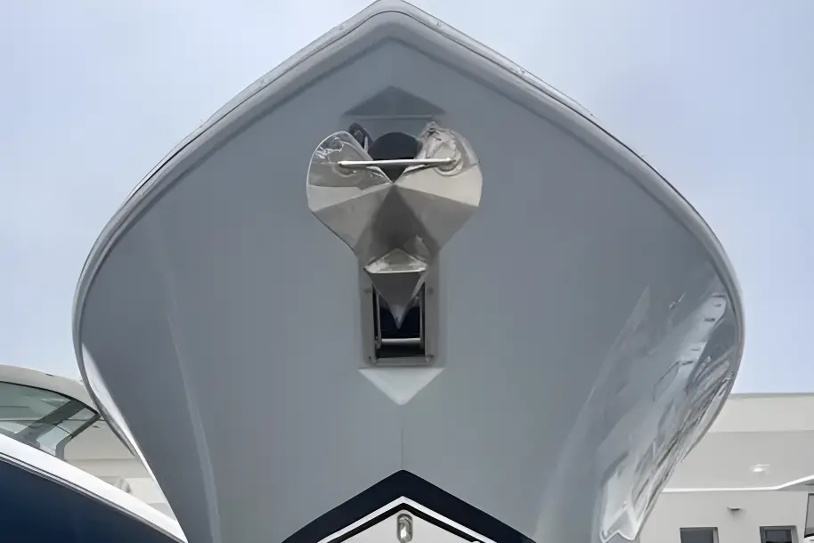 - Flush Mounted Integral Anchor Locker with Fiberglass Lid (w/Gas Spring) Including: Horizontal Anchor Windlass with Switch at Helm and Remote at Anchor Locker, 316L Stainless Steel Thru-Stem Anchor Roller with 8" Mooring Cleat, Chain Binder, 22lb Stainless Steel Plow Style Anchor, Self-Righting Shackle, 200' Rode (1/2" 8 Plait including 20' of ¼" G4 Chain), Fresh & Raw Water Quick Connect Fittings and LED Courtesy Light